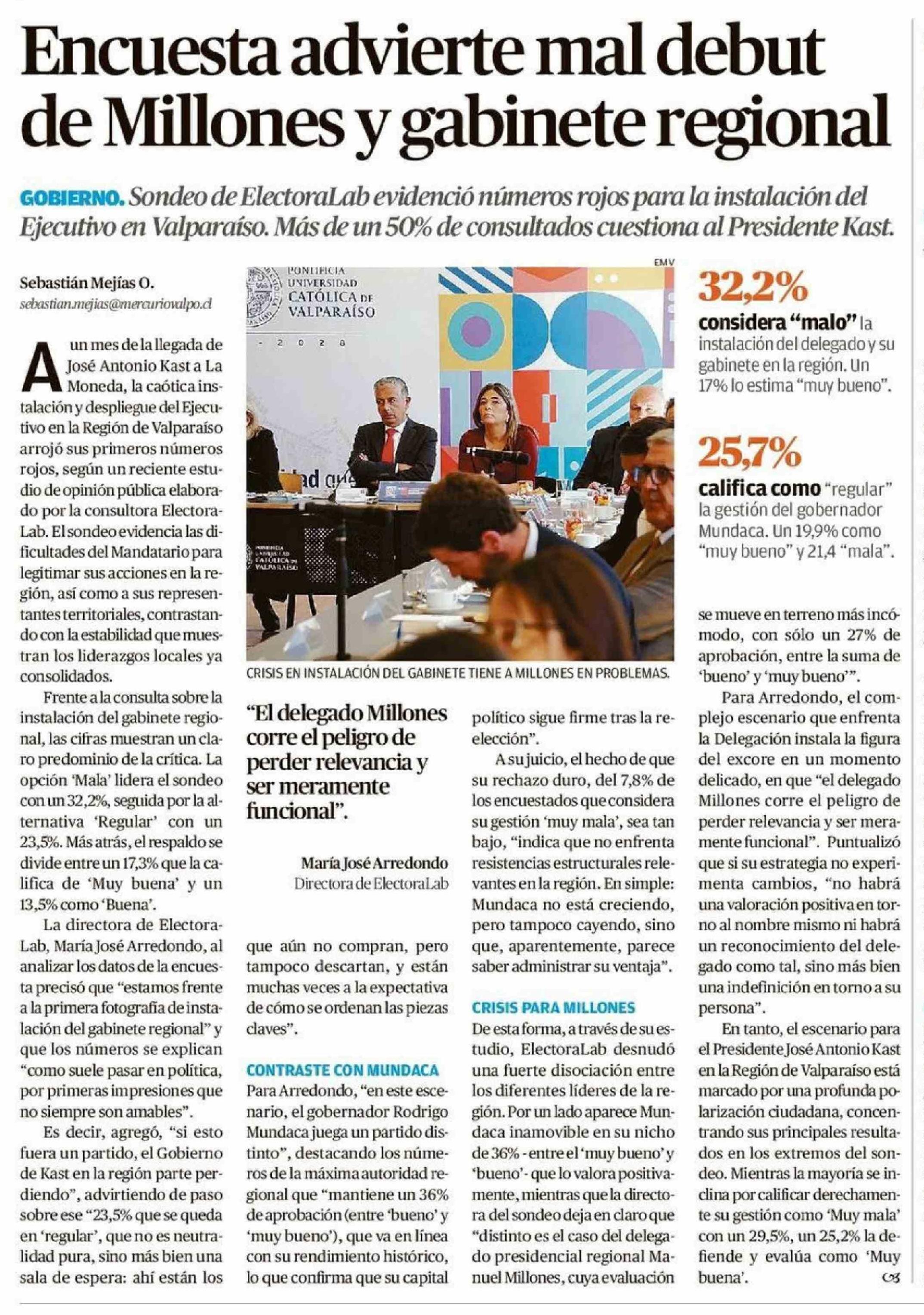 Encuesta advierte mal debut de Millones y gabinete regional