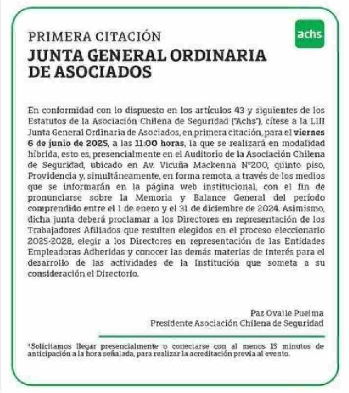 EXTRACTOS: ASOCIACIÓN CHILENA DE SEGURIDAD