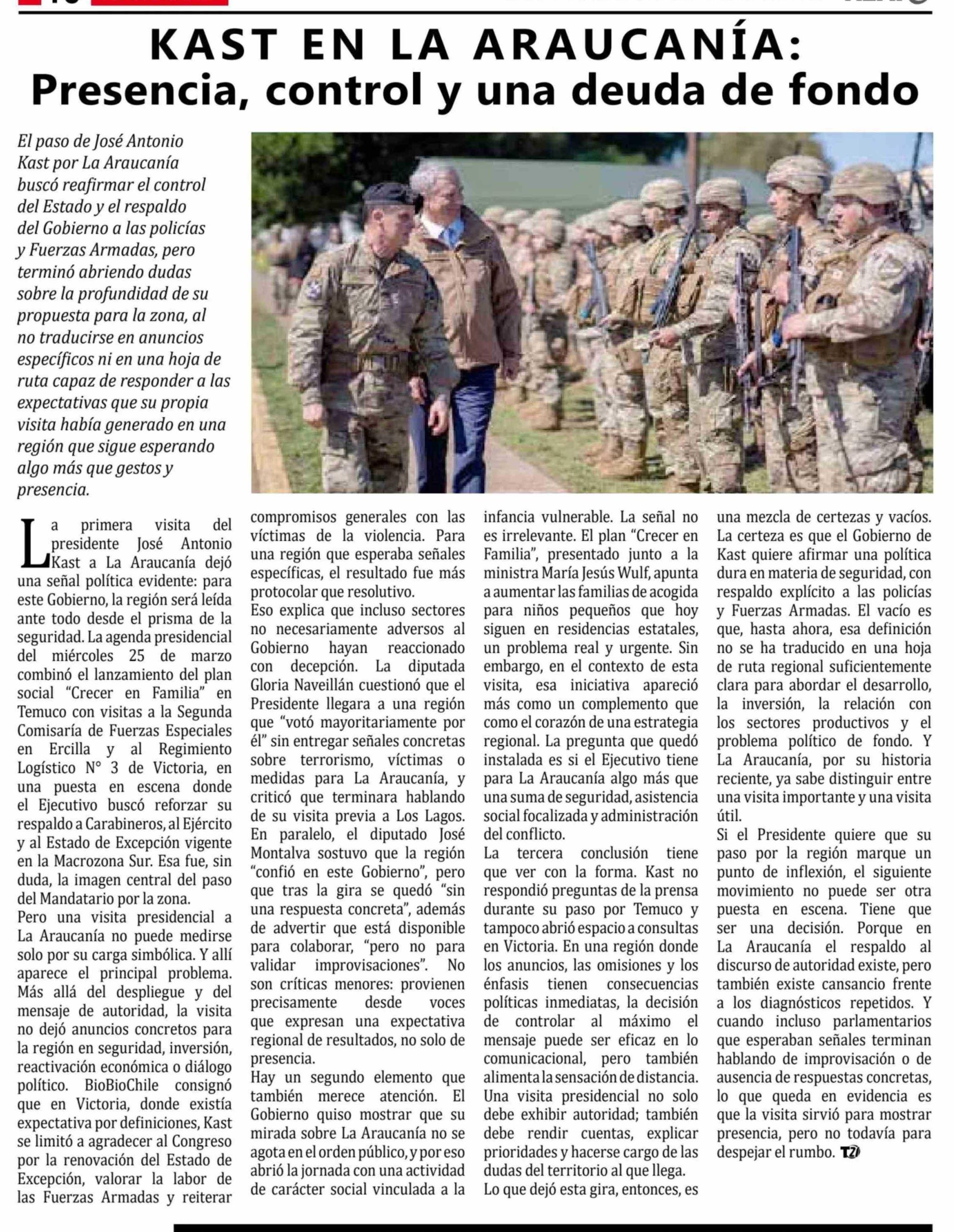 KAST EN LA ARAUCANÍA: Presencia, control y una deuda de fondo