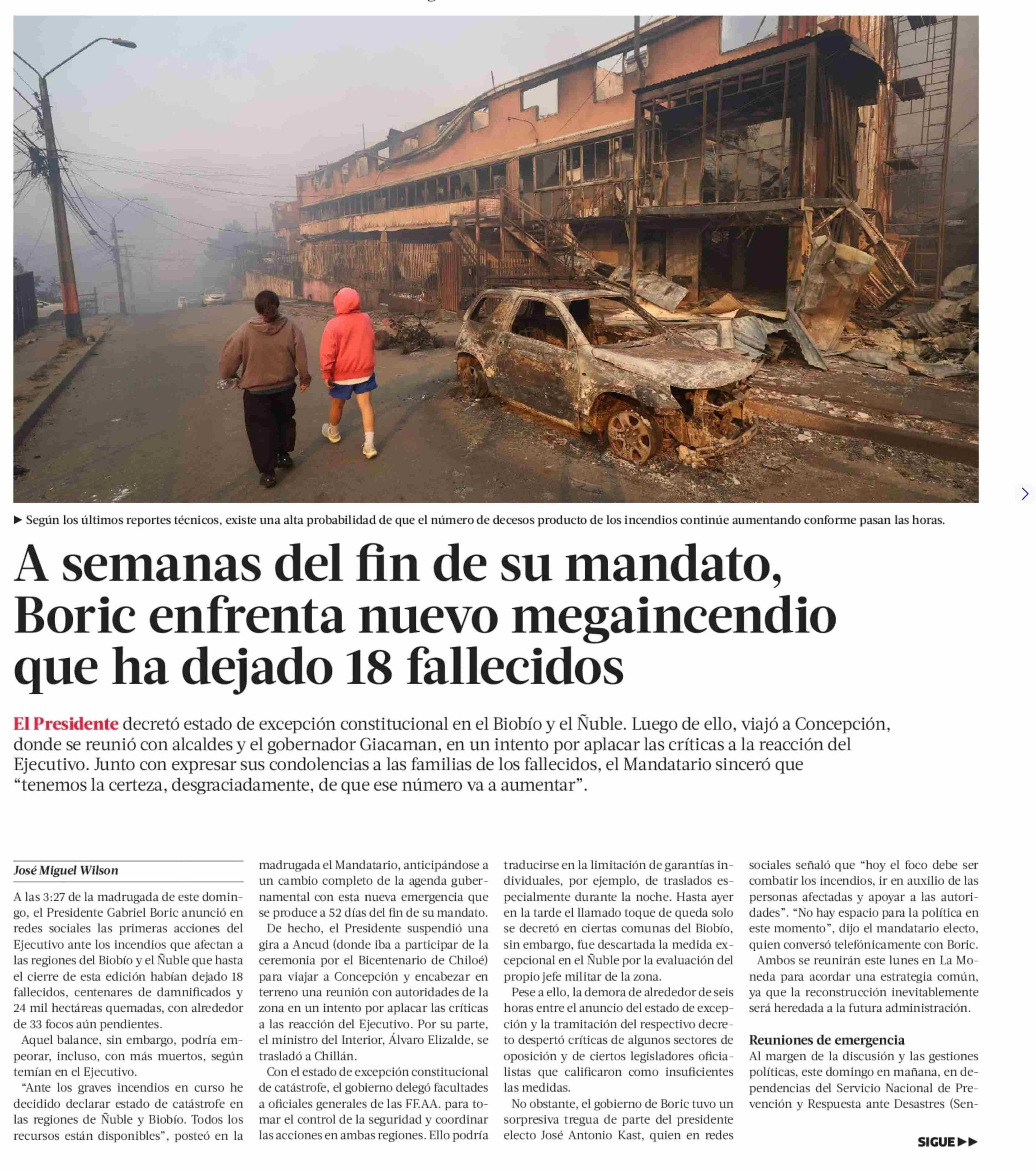 A semanas del fin de su mandato, Boric enfrenta nuevo megaincendio que ha dejado 18 fallecidos