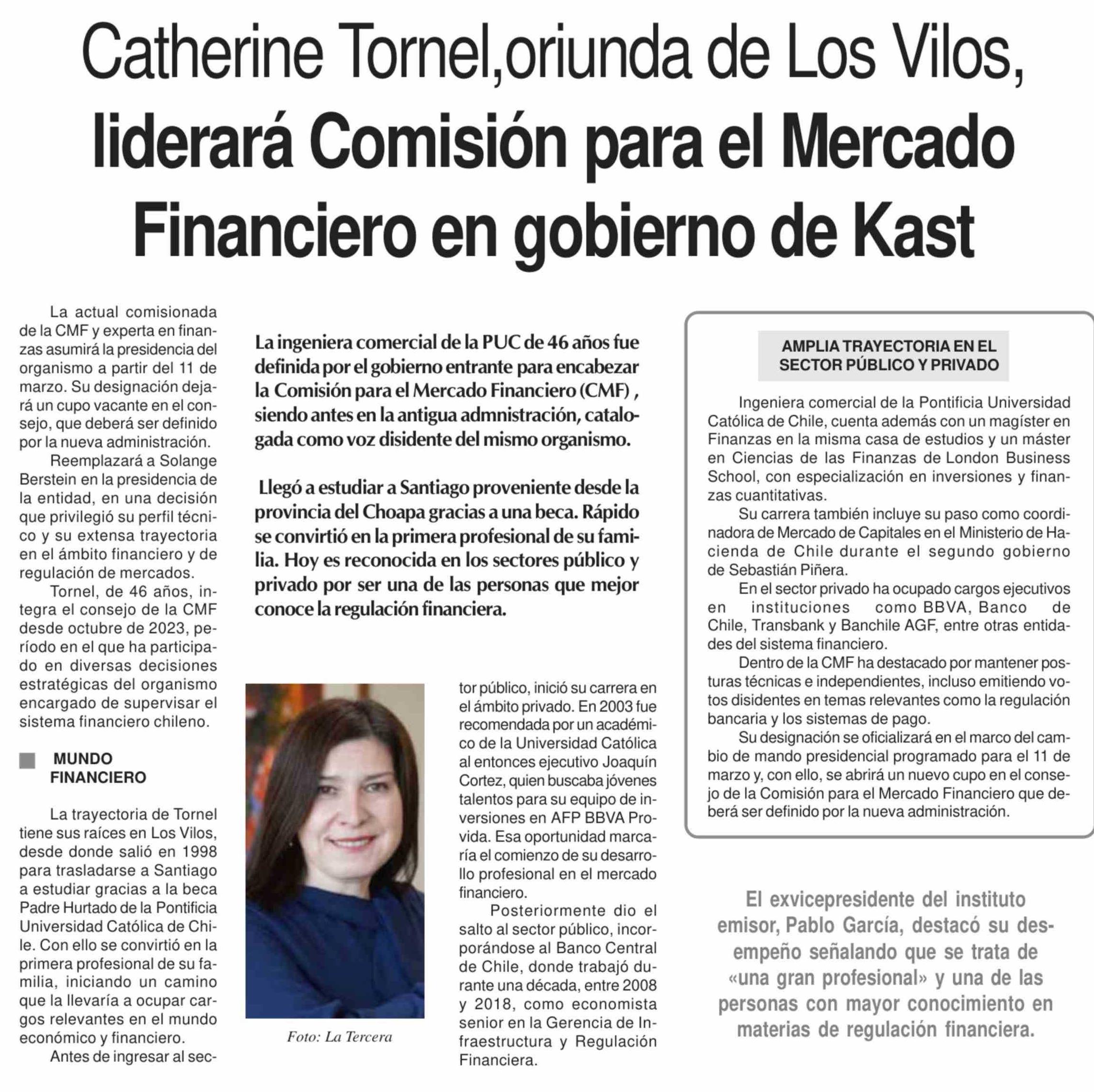 Catherine Tornel,oriunda de Los Vilos, liderará Comisión para el Mercado Financiero en gobierno de Kast