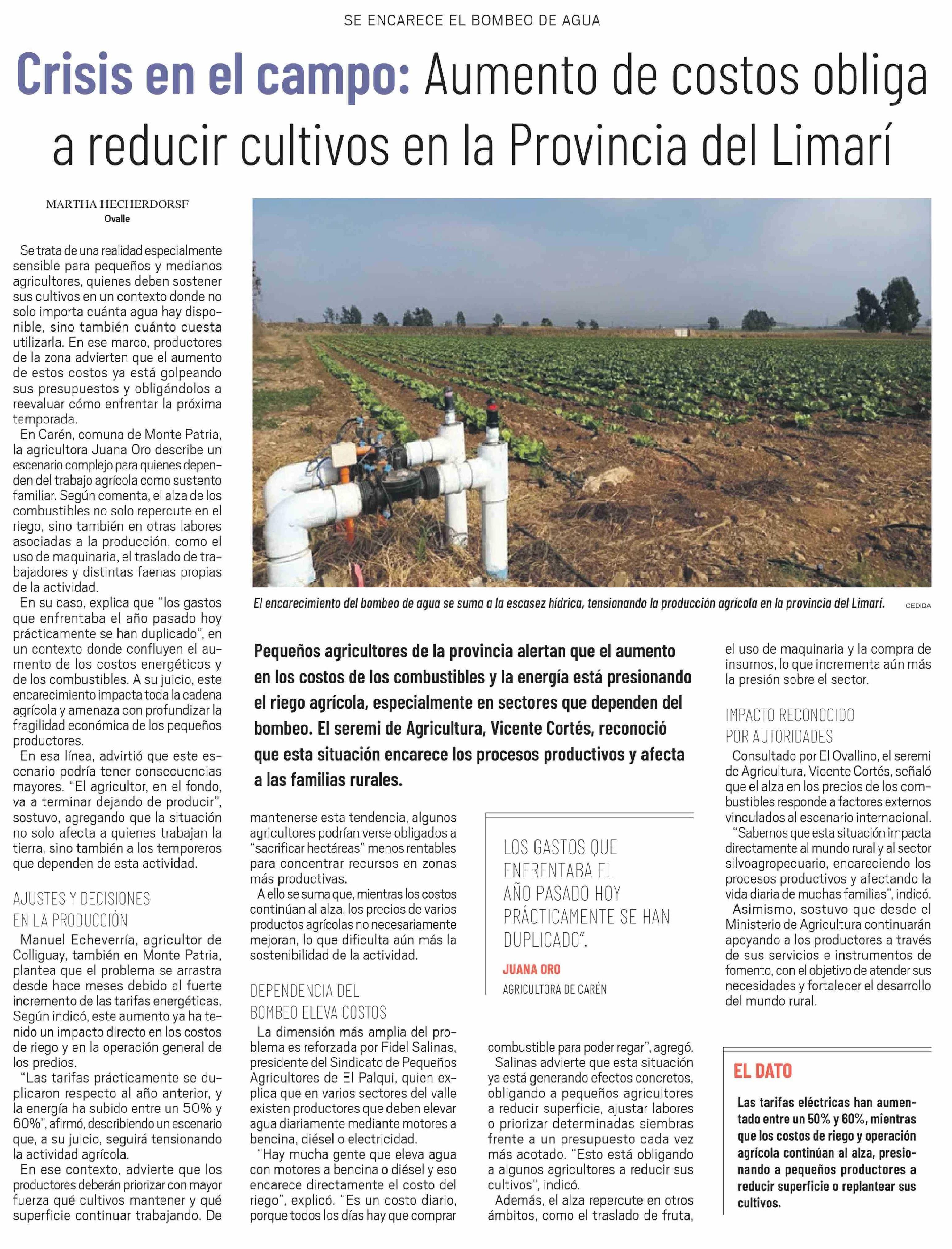 Crisis en el campo: Aumento de costos obliga a reducir cultivos en la Provincia del Limarí
