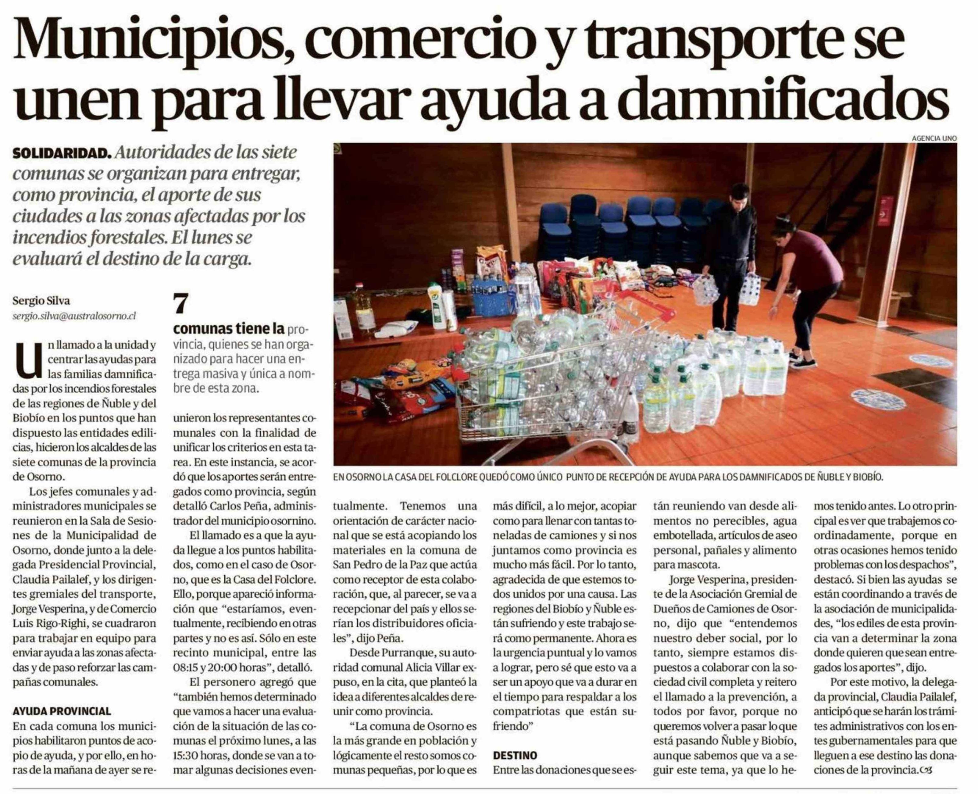 Municipios, comercio y transporte se unen para llevar ayuda a damnificados