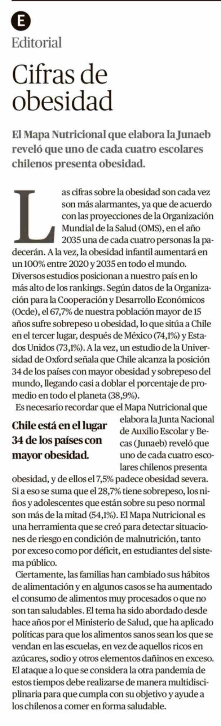 Editorial: Cifras de obesidad