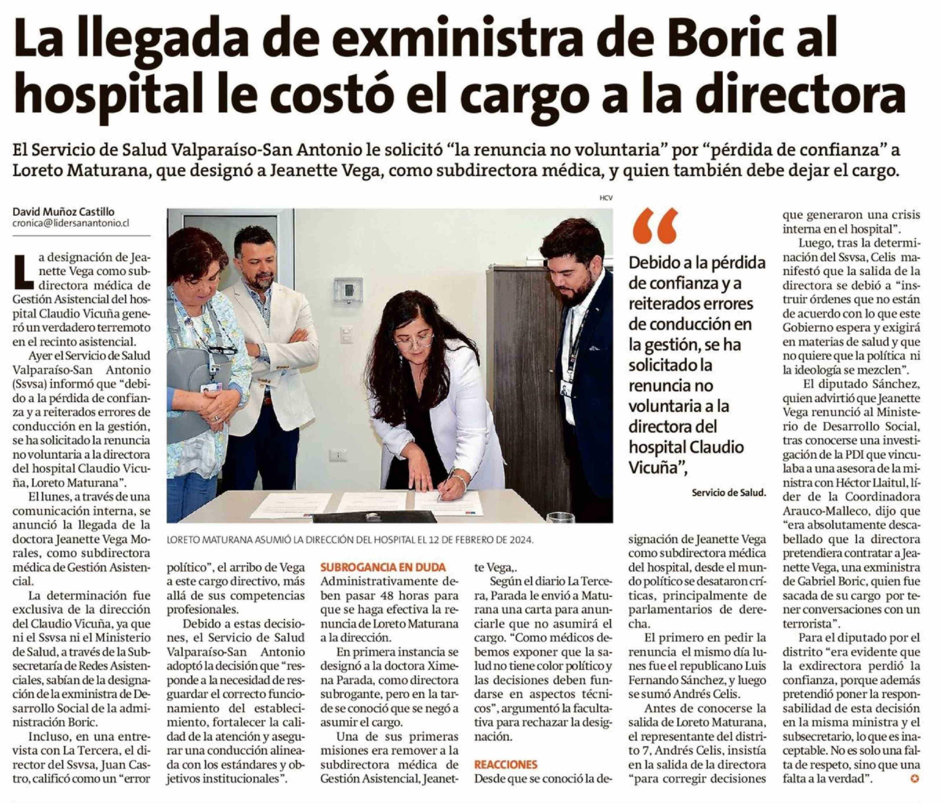 La llegada de exministra de Boric al hospital le costó el cargo a la directora
