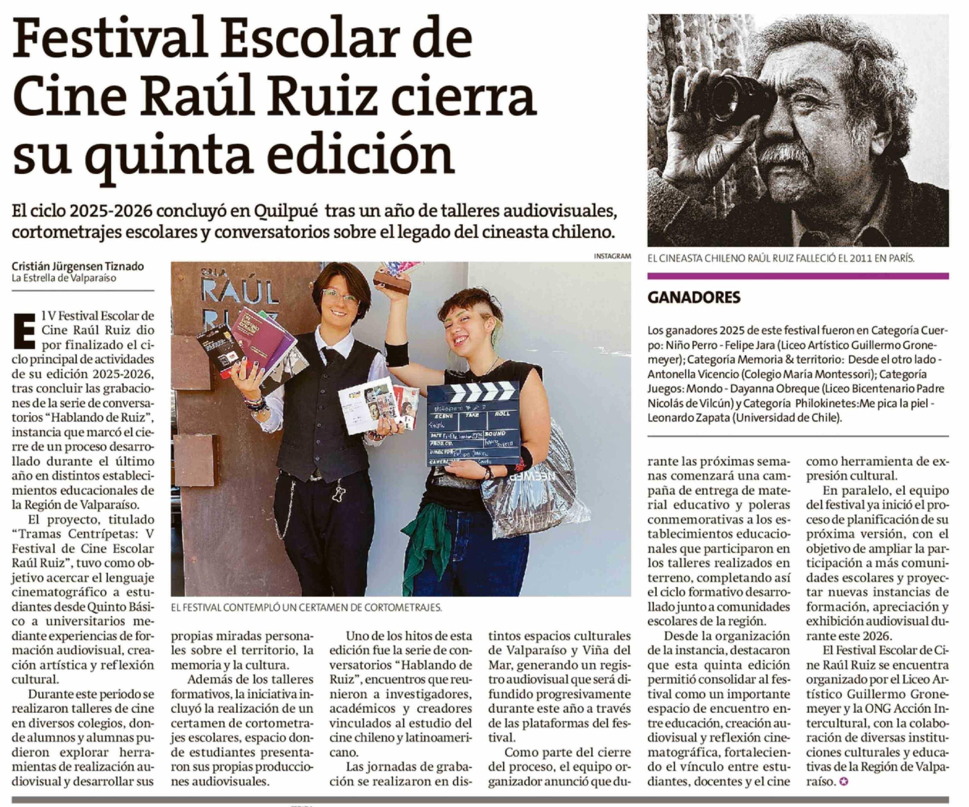 Festival Escolar de Cine Raúl Ruiz cierra su quinta edición