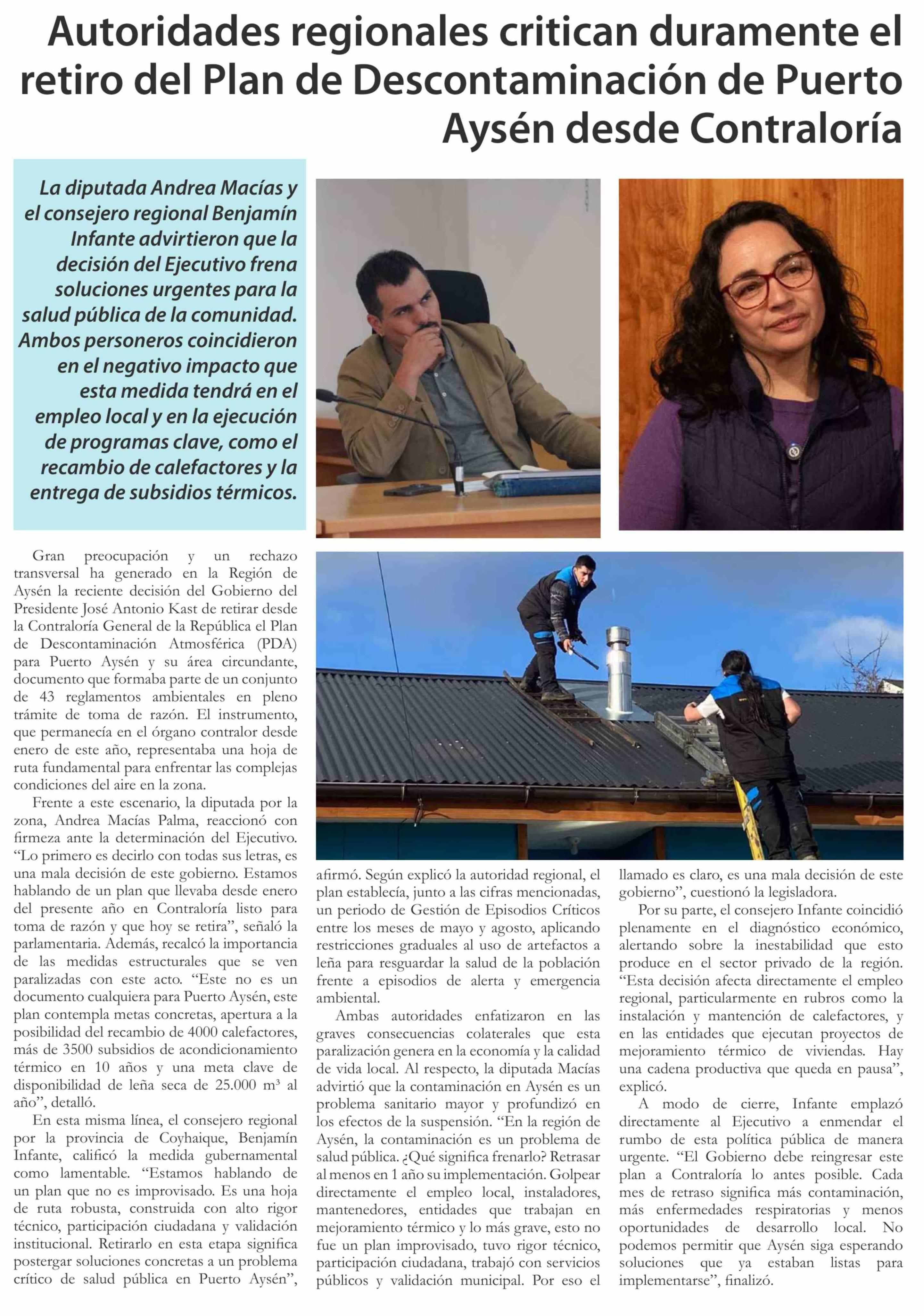 Autoridades regionales critican duramente el retiro del Plan de Descontaminación de Puerto Aysén desde Contraloría