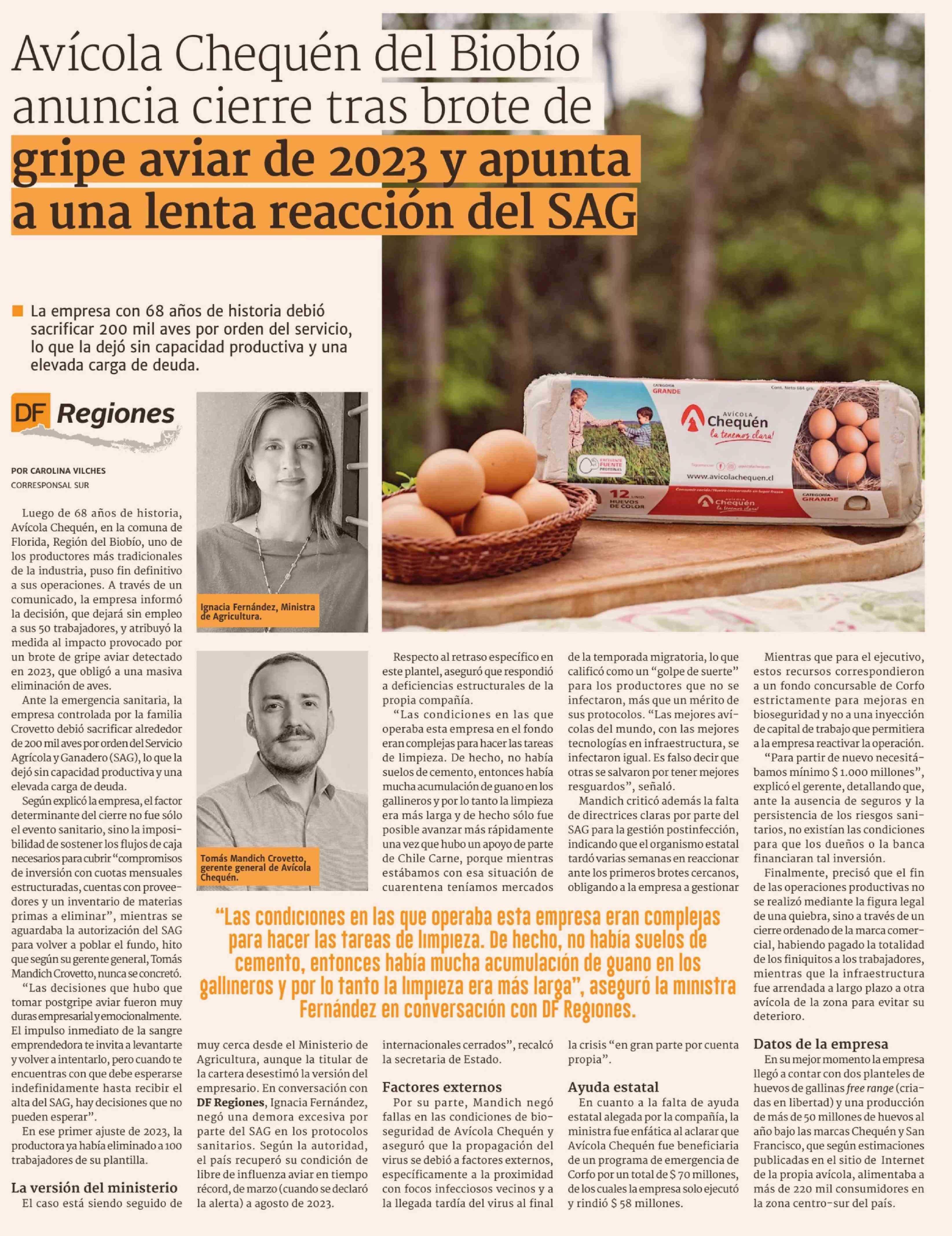 Avícola Chequén del Biobío anuncia cierre tras brote de gripe aviar de 2023 y apunta a una lenta reacción del SAG