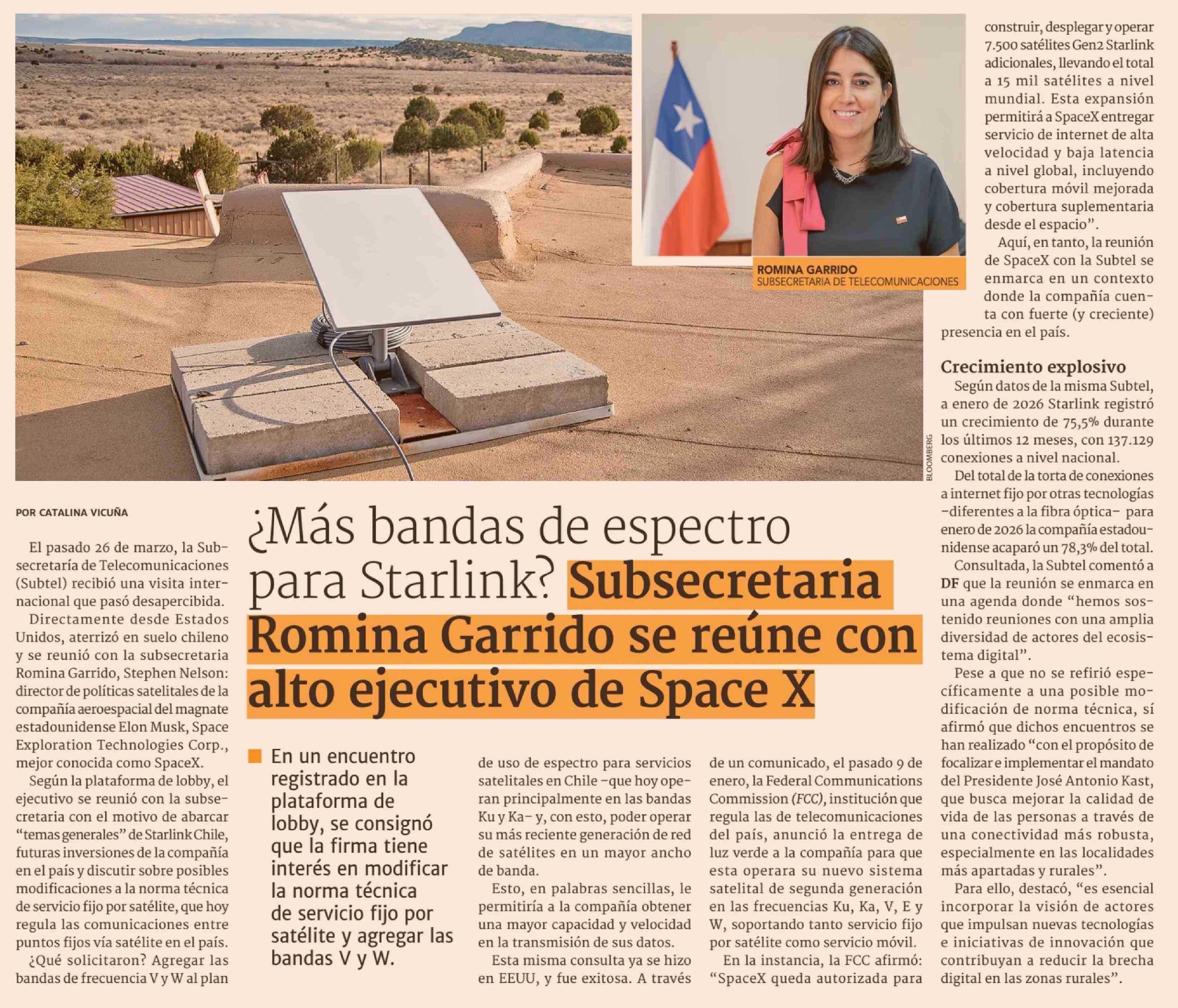 ¿Más bandas de espectro para Starlink? Subsecretaria Romina Garrido se reúne con alto ejecutivo de Space X