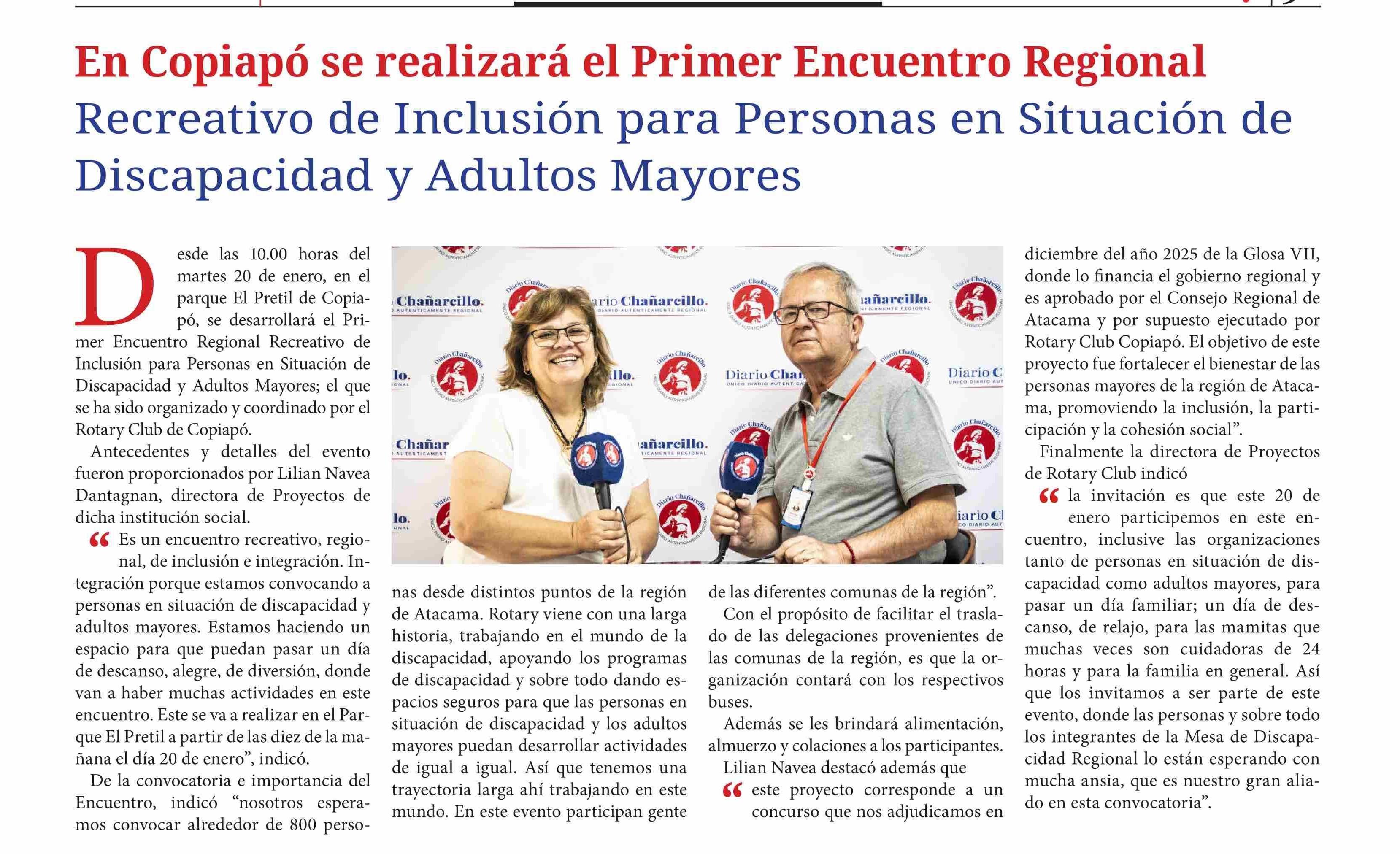 En Copiapó se realizará el Primer Encuentro Regional Recreativo de Inclusión para Personas en Situación de Discapacidad y Adultos Mayores