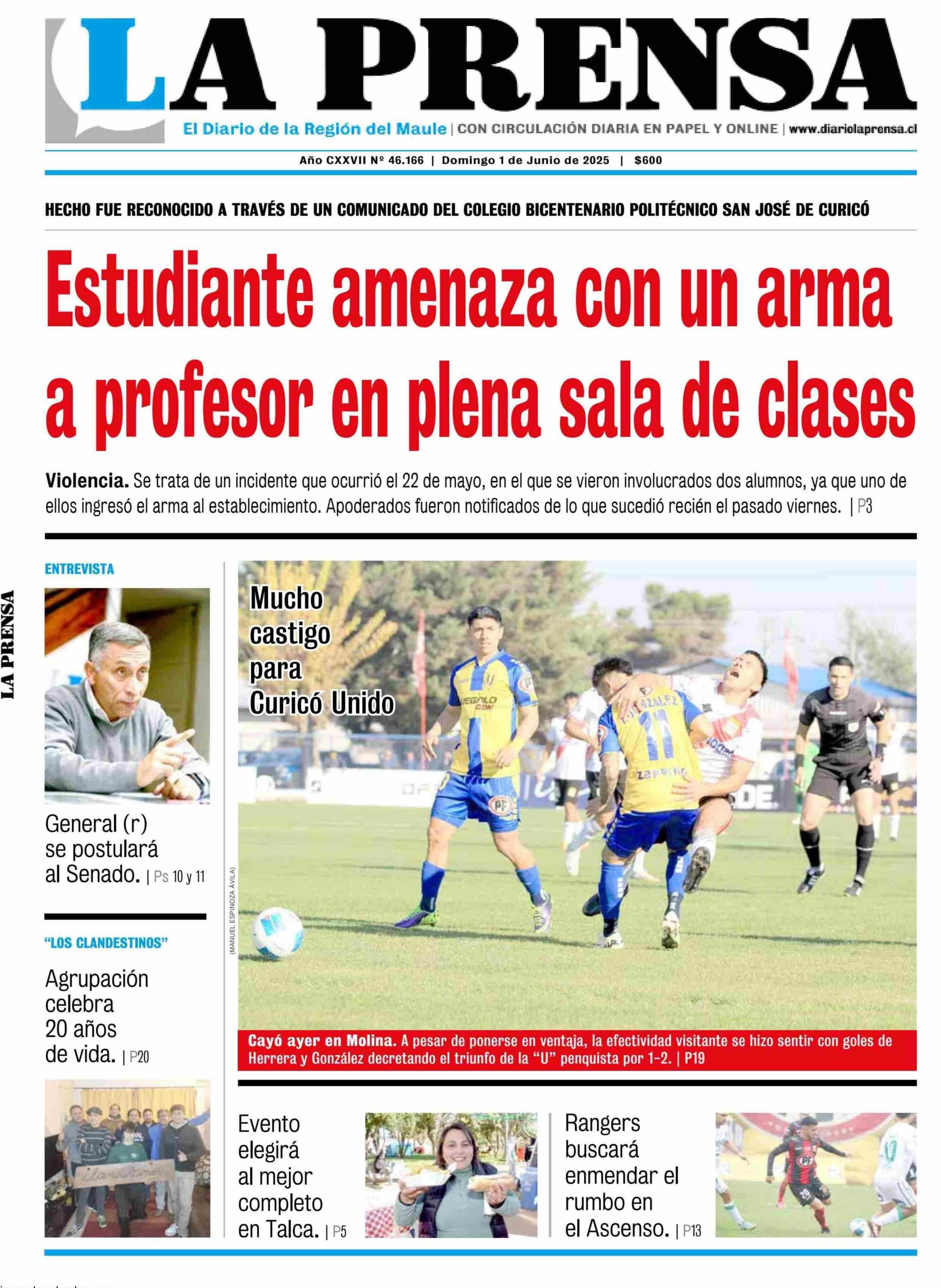 PORTADA LA PRENSA DE CURICÓ CHILE