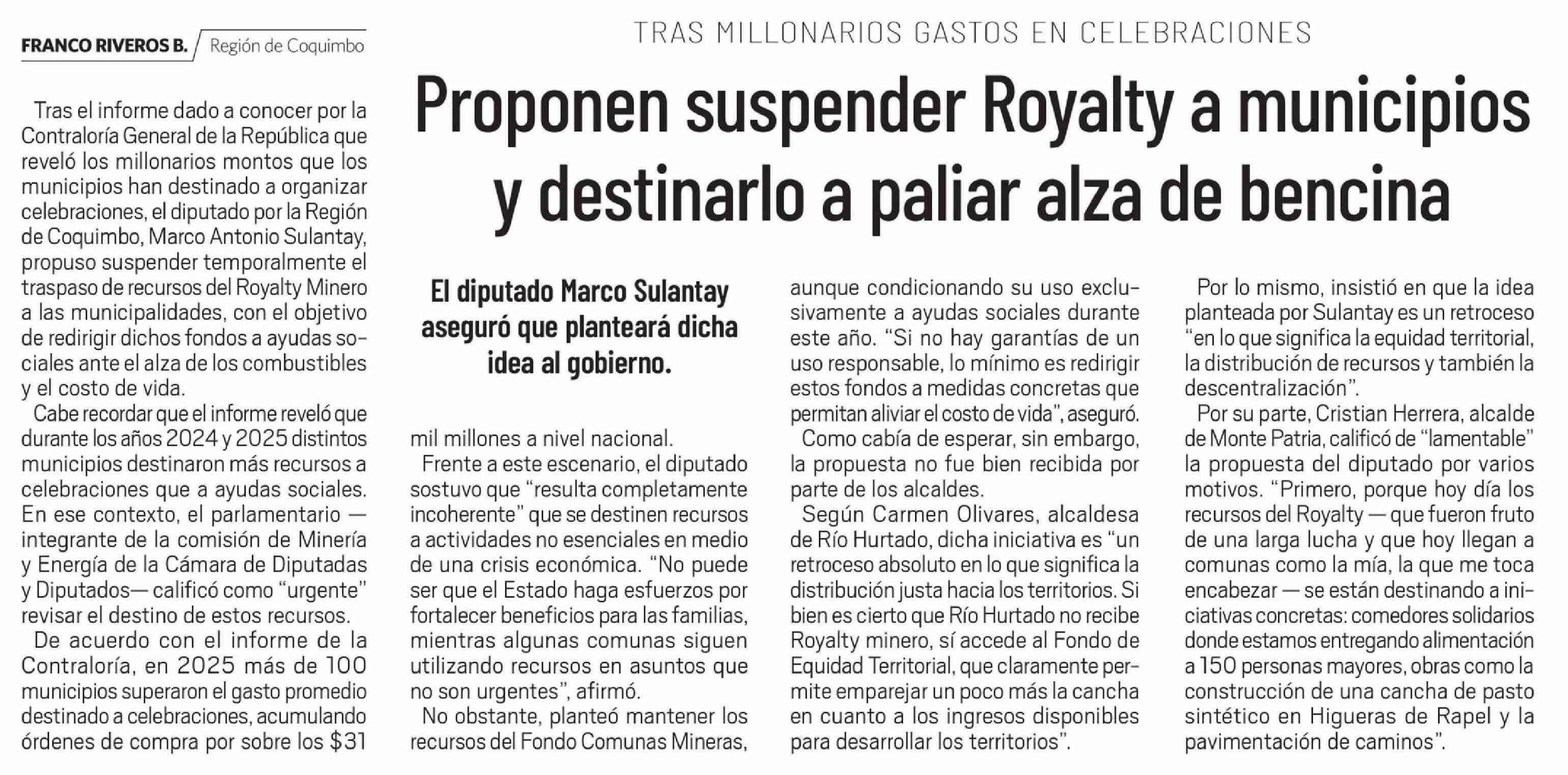 Proponen suspender Royalty a municipios y destinarlo a paliar alza de bencina