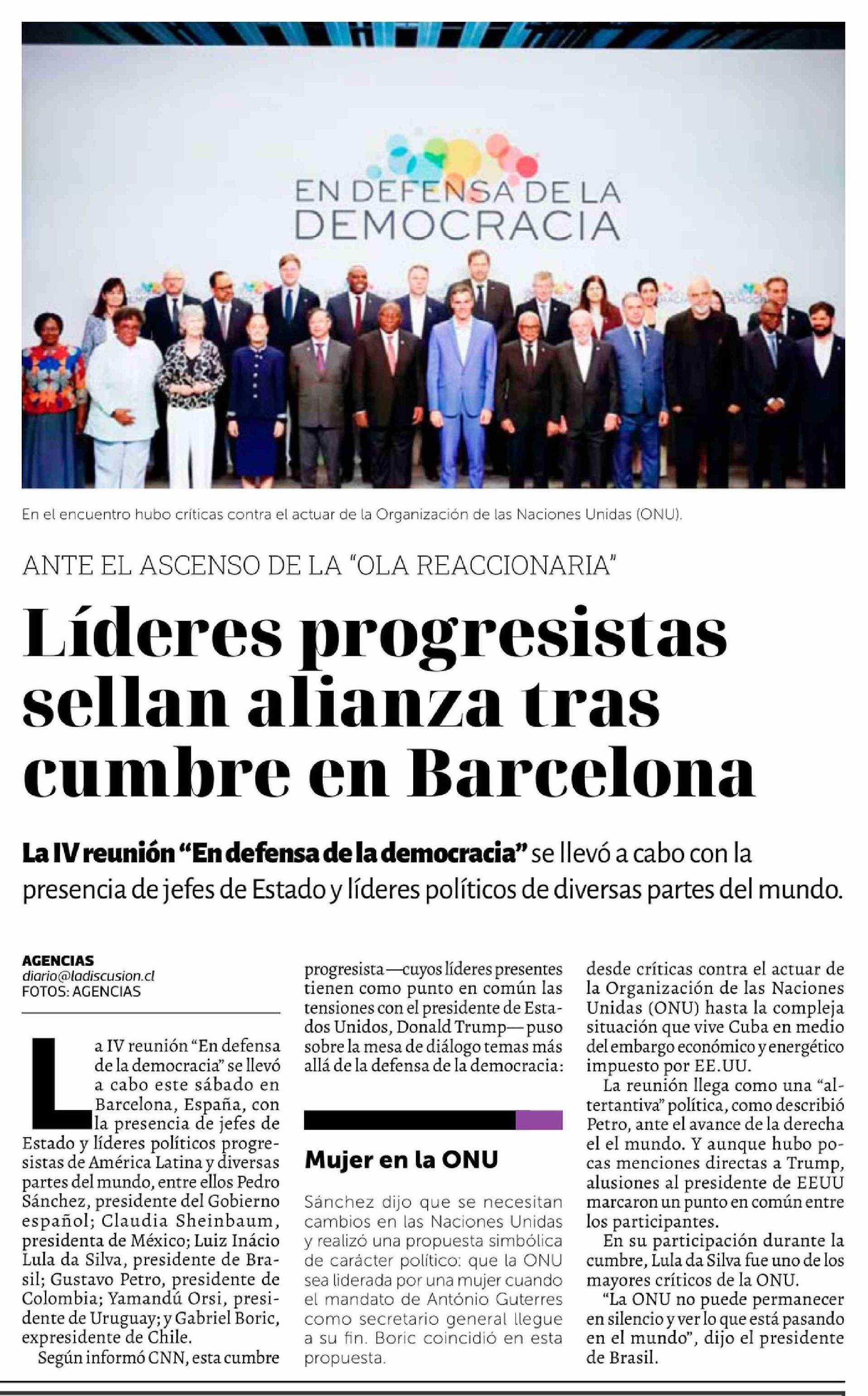 Líderes progresistas sellan alianza tras cumbre en Barcelona