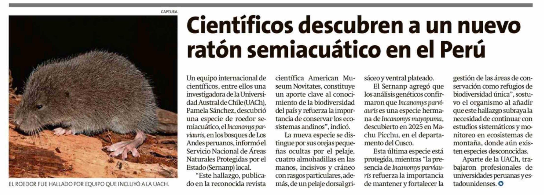 Científicos descubren a un nuevo ratón semiacuático en el Perú