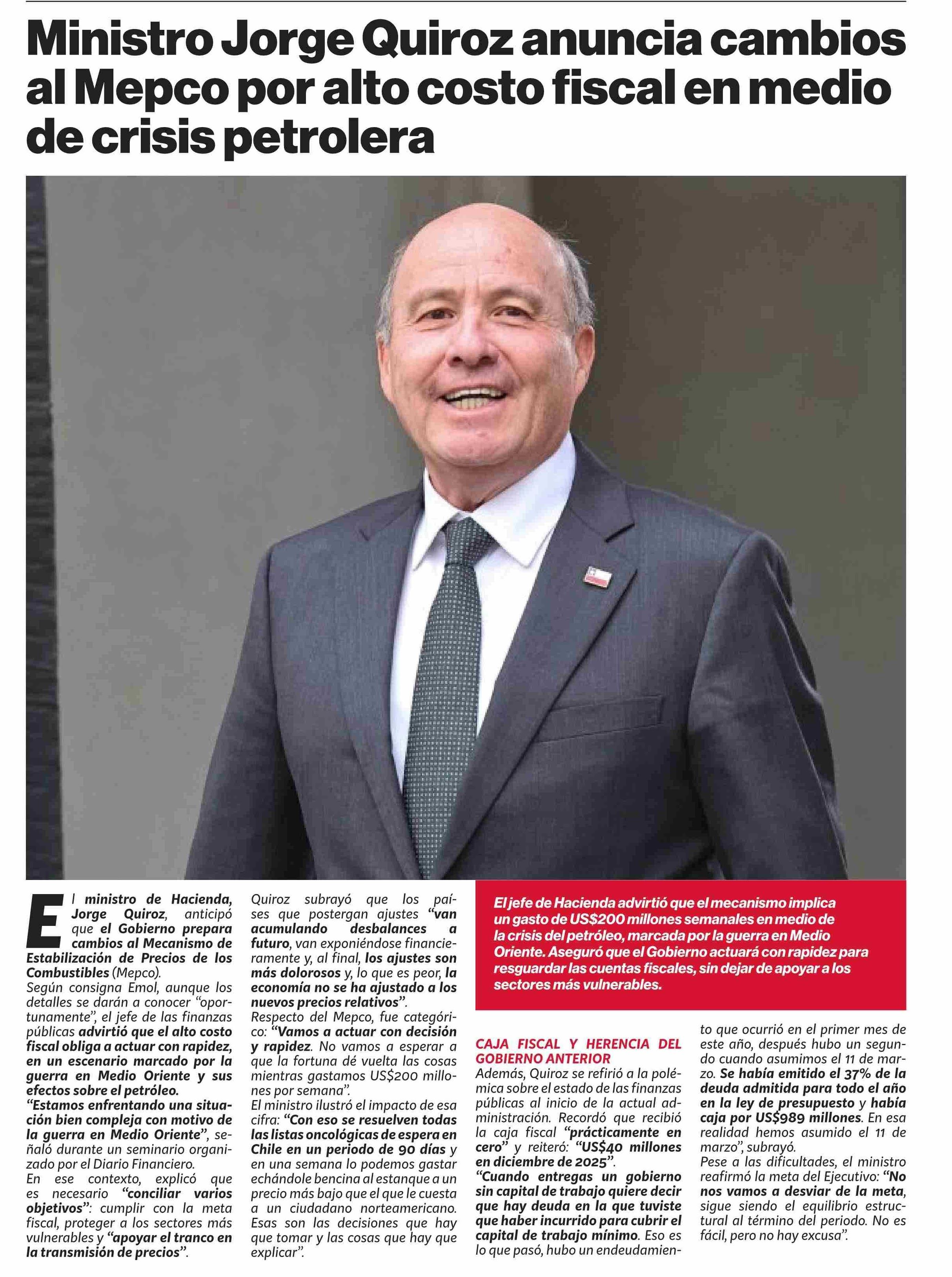 Ministro Jorge Quiroz anuncia cambios al Mepco por alto costo fiscal en medio de crisis petrolera