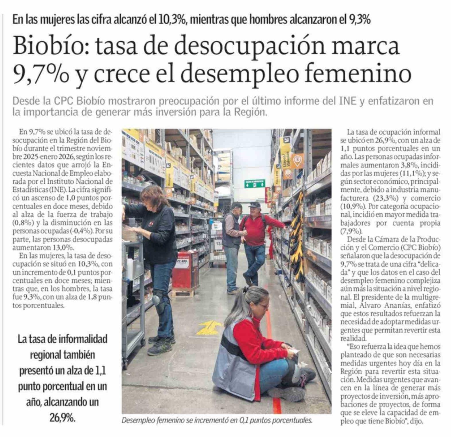 Biobío: tasa de desocupación marca 9,7% y crece el desempleo femenino