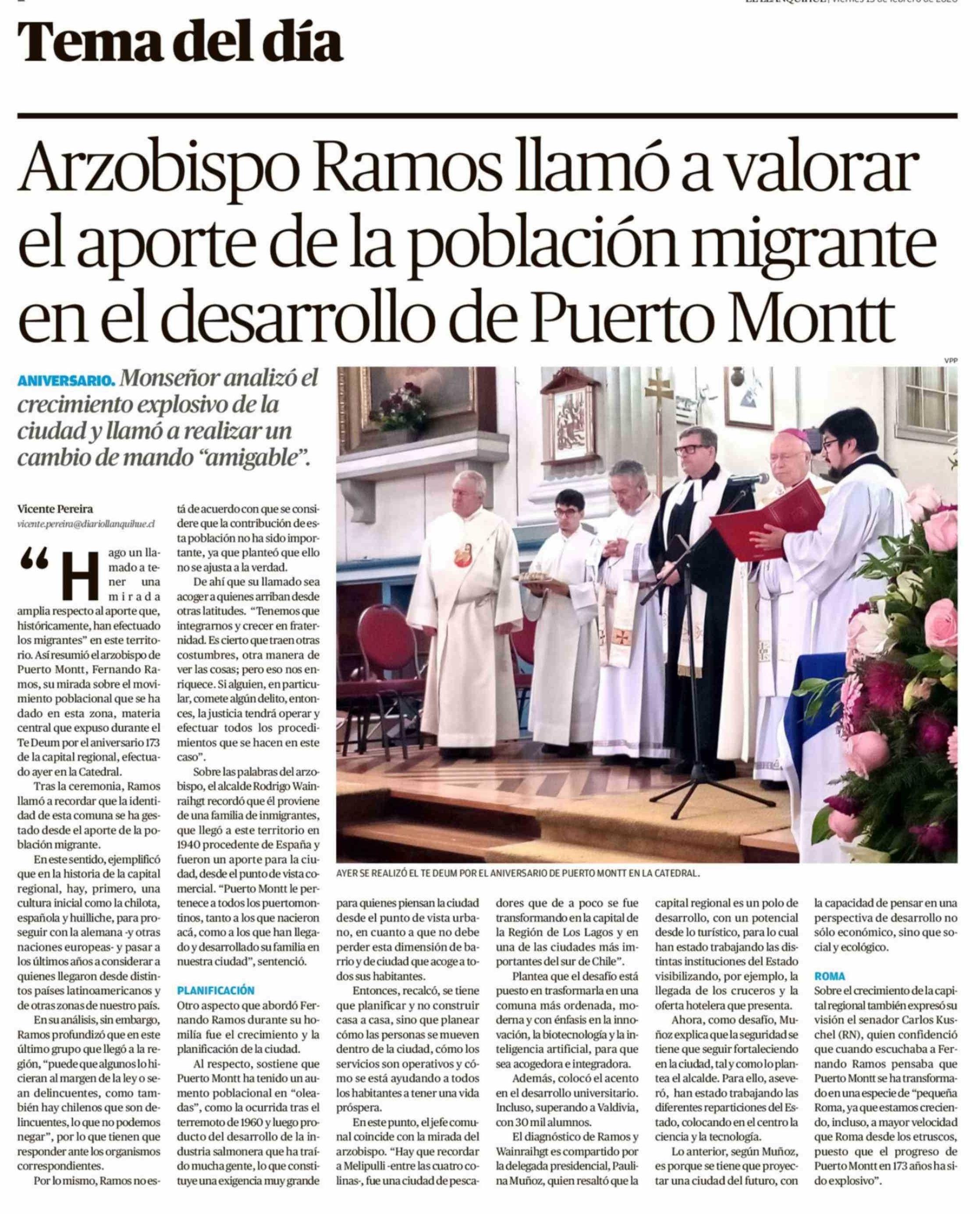 Arzobispo Ramos llamó a valorar el aporte de la población migrante en el desarrollo de Puerto Montt