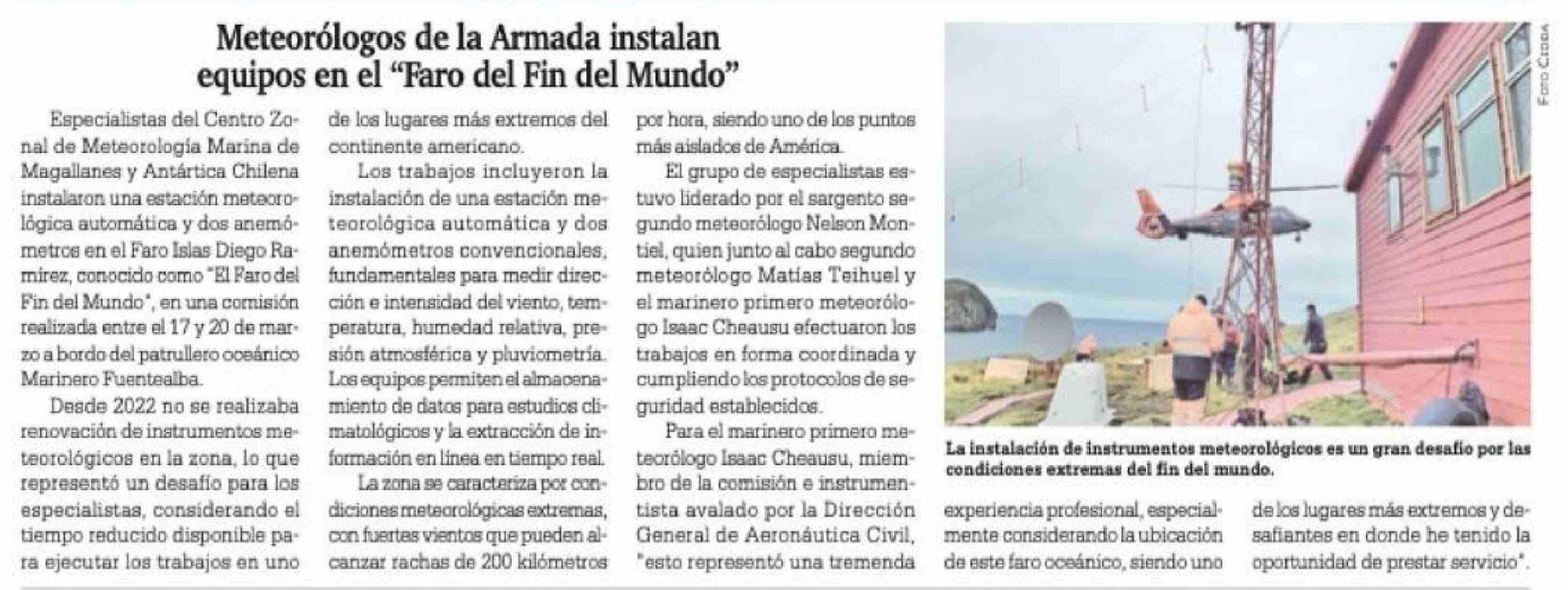 Meteorólogos de la Armada instalan equipos en el "Faro del Fin del Mundo"