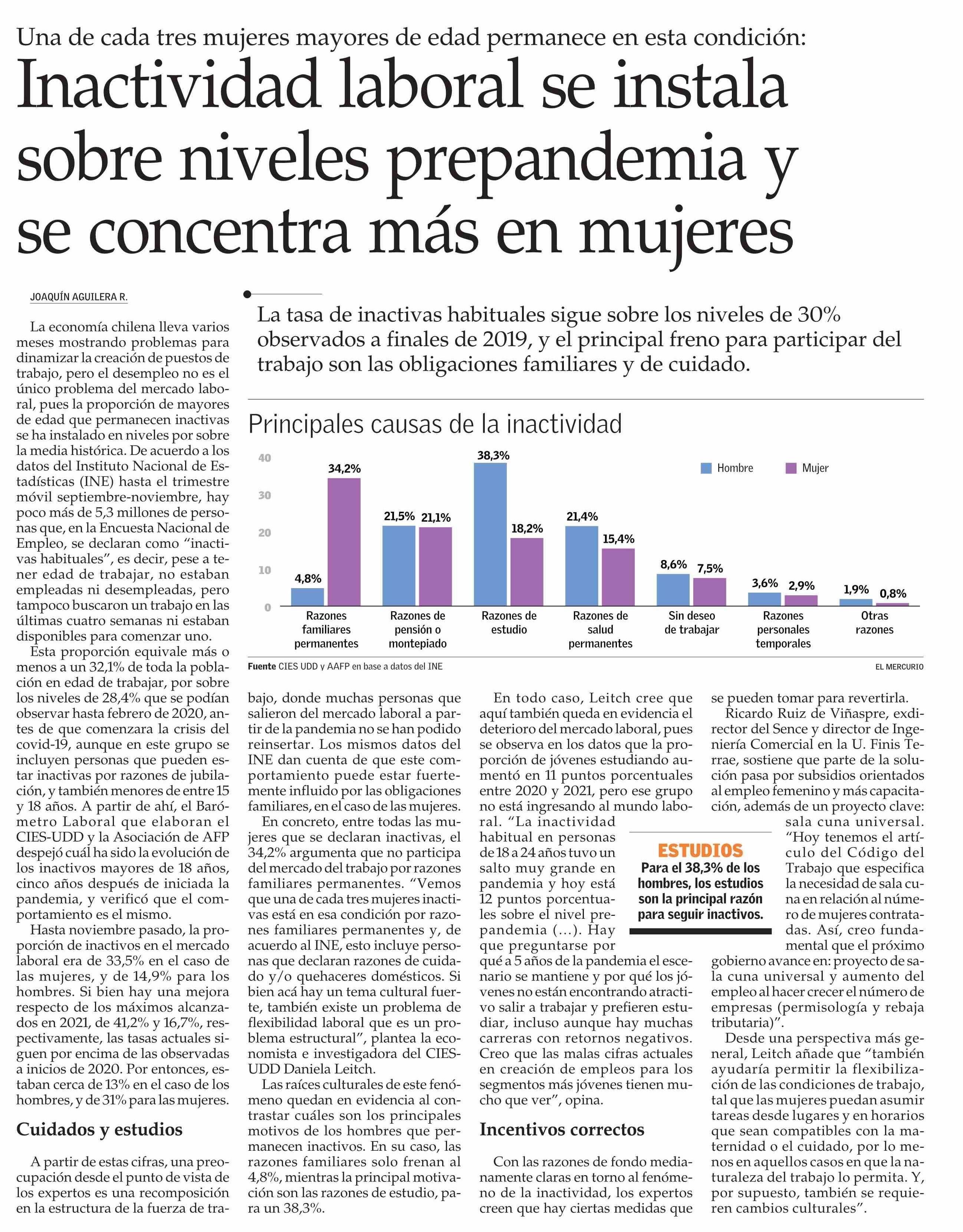 Inactividad laboral se instala sobre niveles prepandemia y se concentra más en mujeres