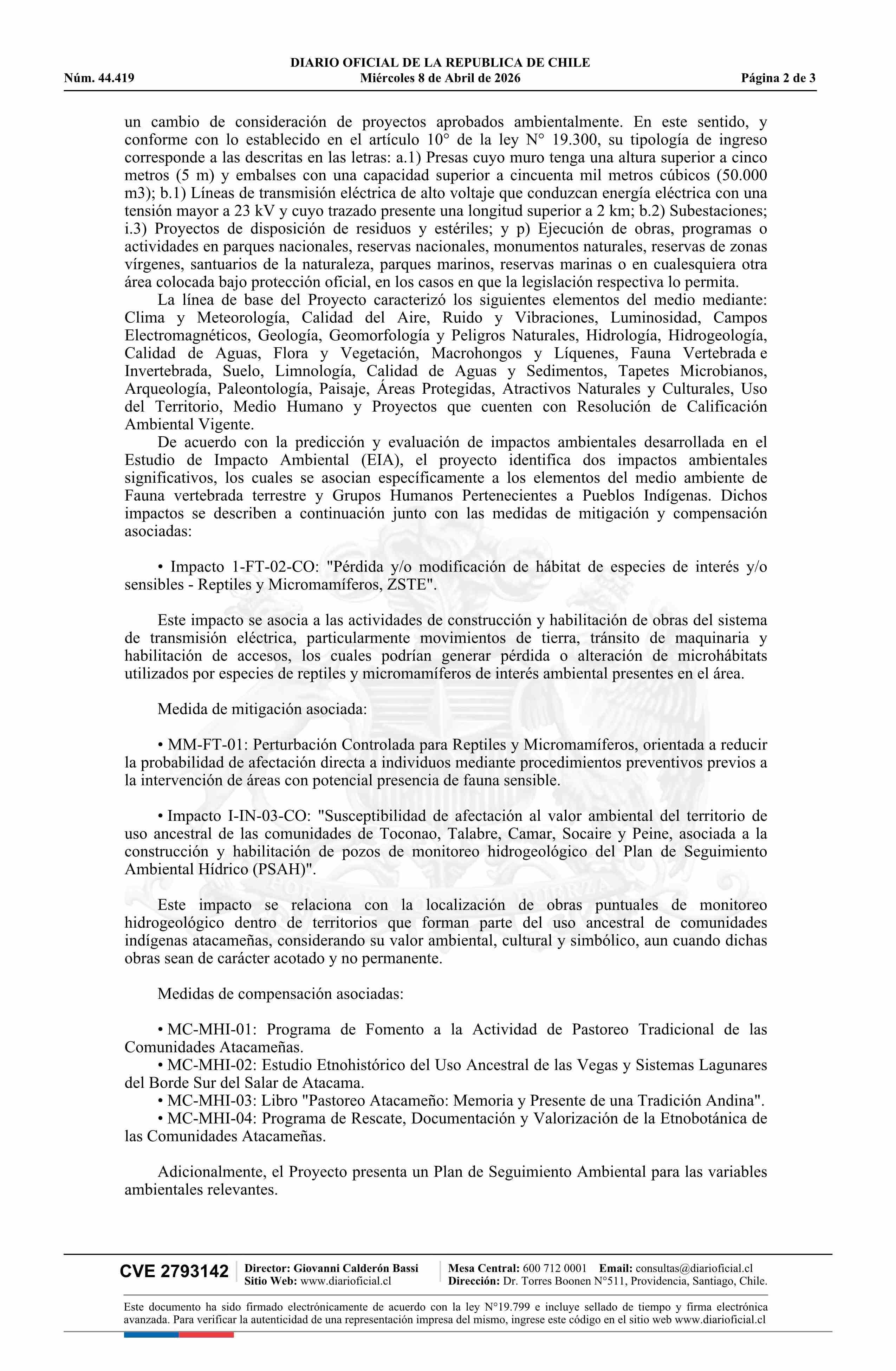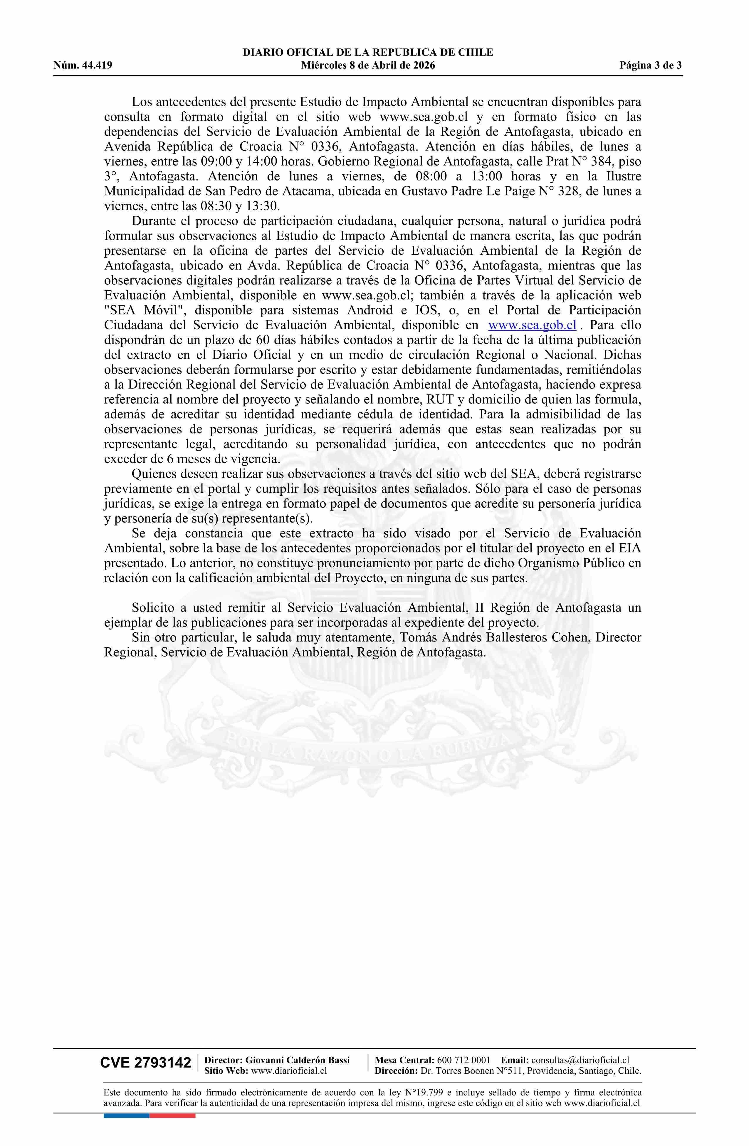 | Título: | Extracto de Estudio de Impacto Ambiental Modificación de la Operación Actual, Proyecto TED: Transición hacia la Extracción Directa de Litio |