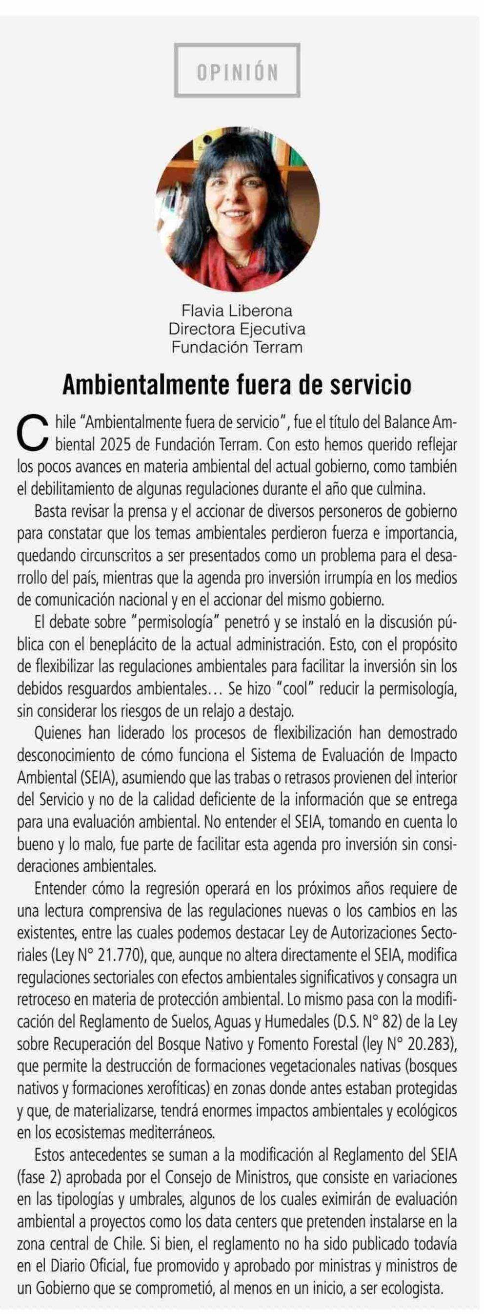 COLUMNAS DE OPINIÓN: Ambientalmente fuera de servicio