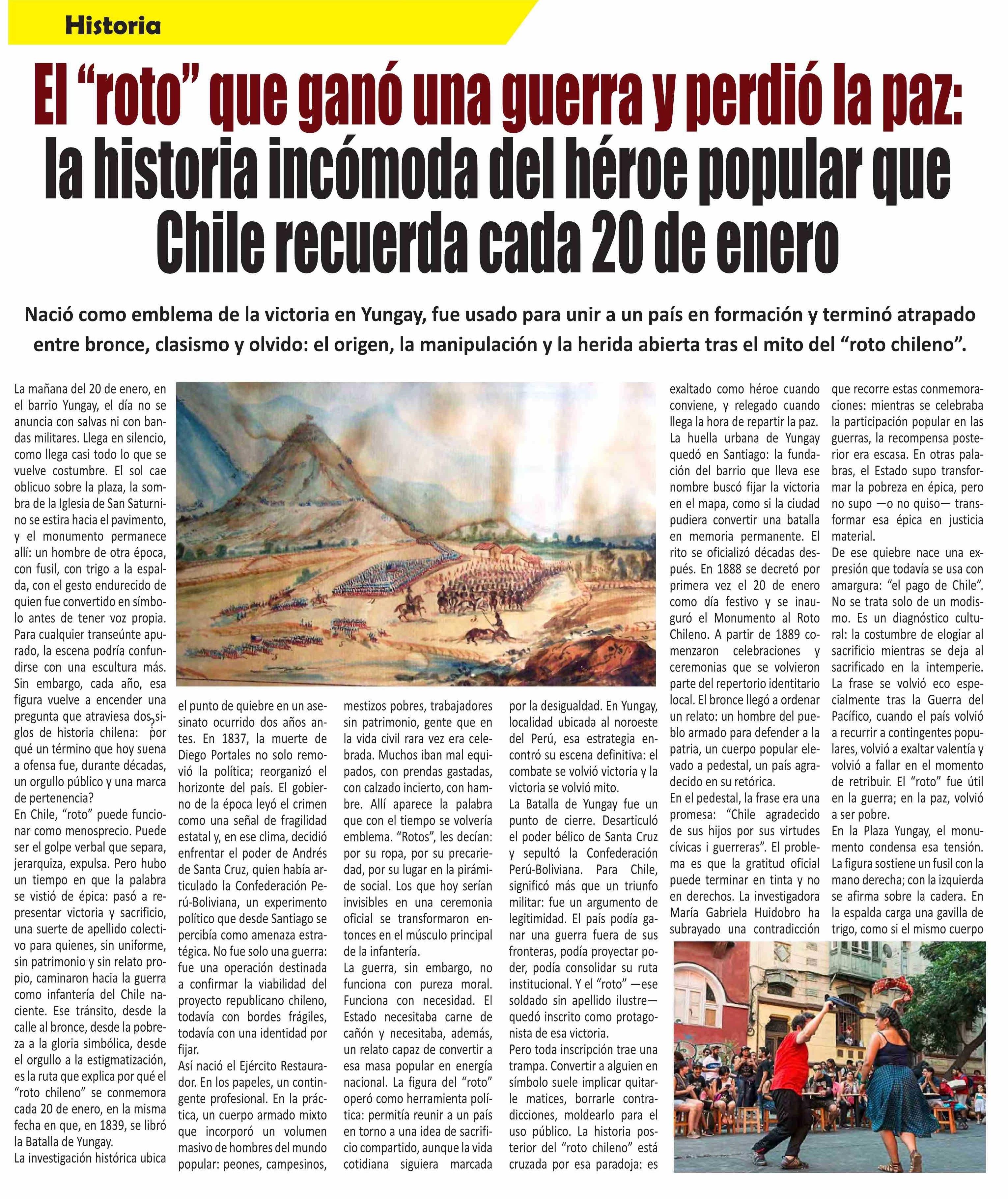 El "roto" que ganó una guerra y perdió la paz: la historia incómoda del héroe popular que Chile recuerda cada 20 de enero