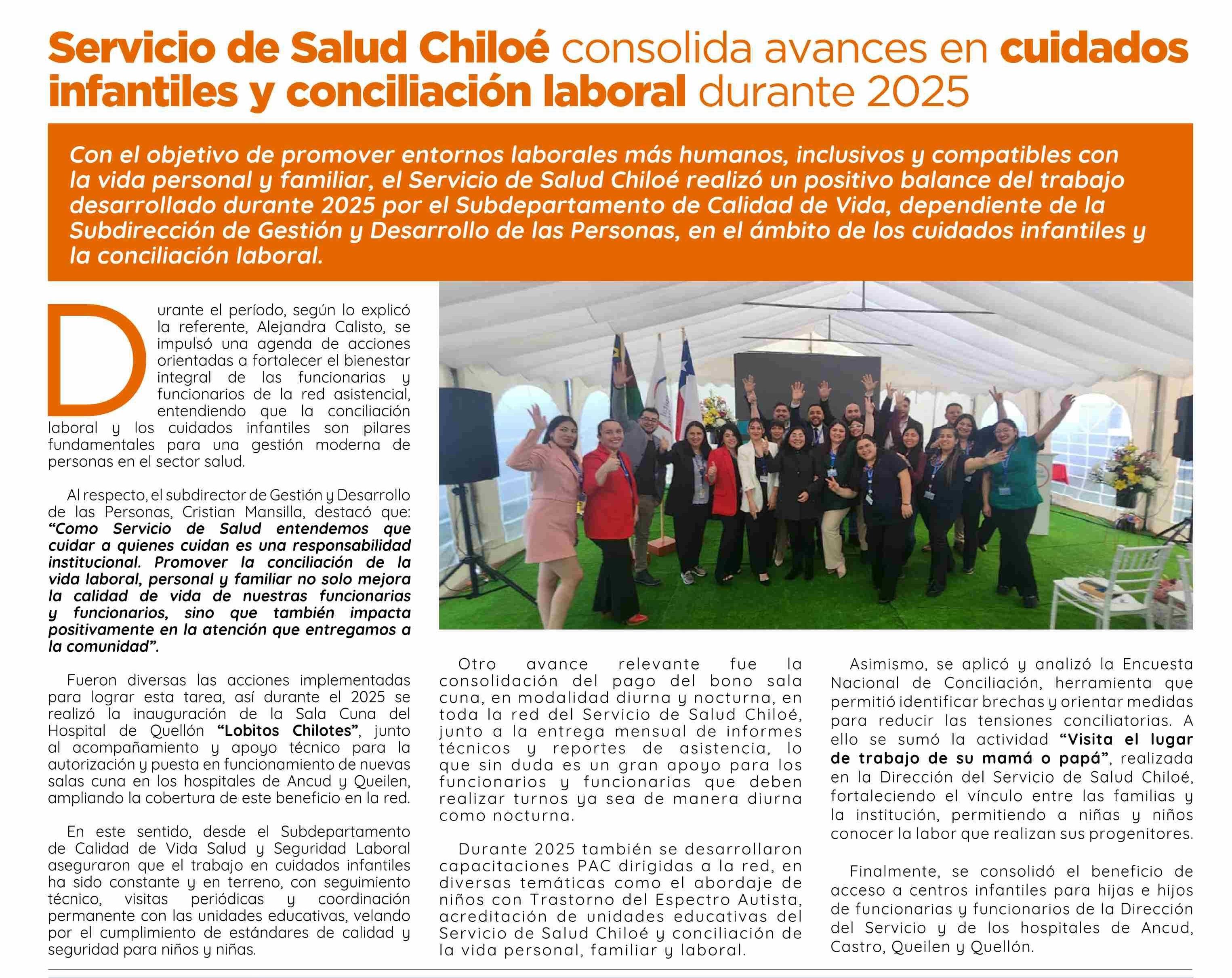 Servicio de Salud Chiloé consolida avances en cuidados infantiles y conciliación laboral durante 2025
