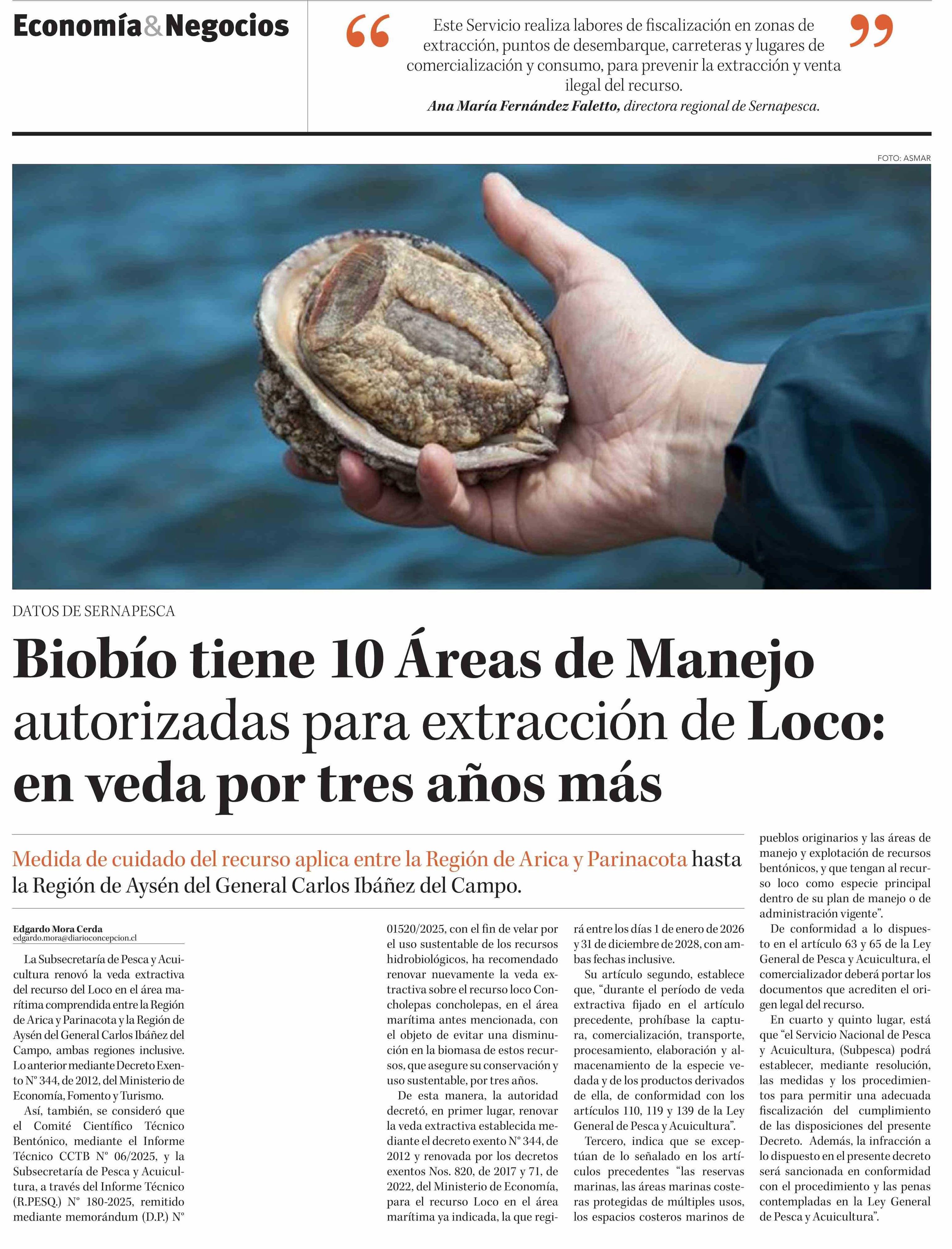 Biobío tiene 10 Áreas de Manejo autorizadas para extracción de Loco: en veda por tres años más