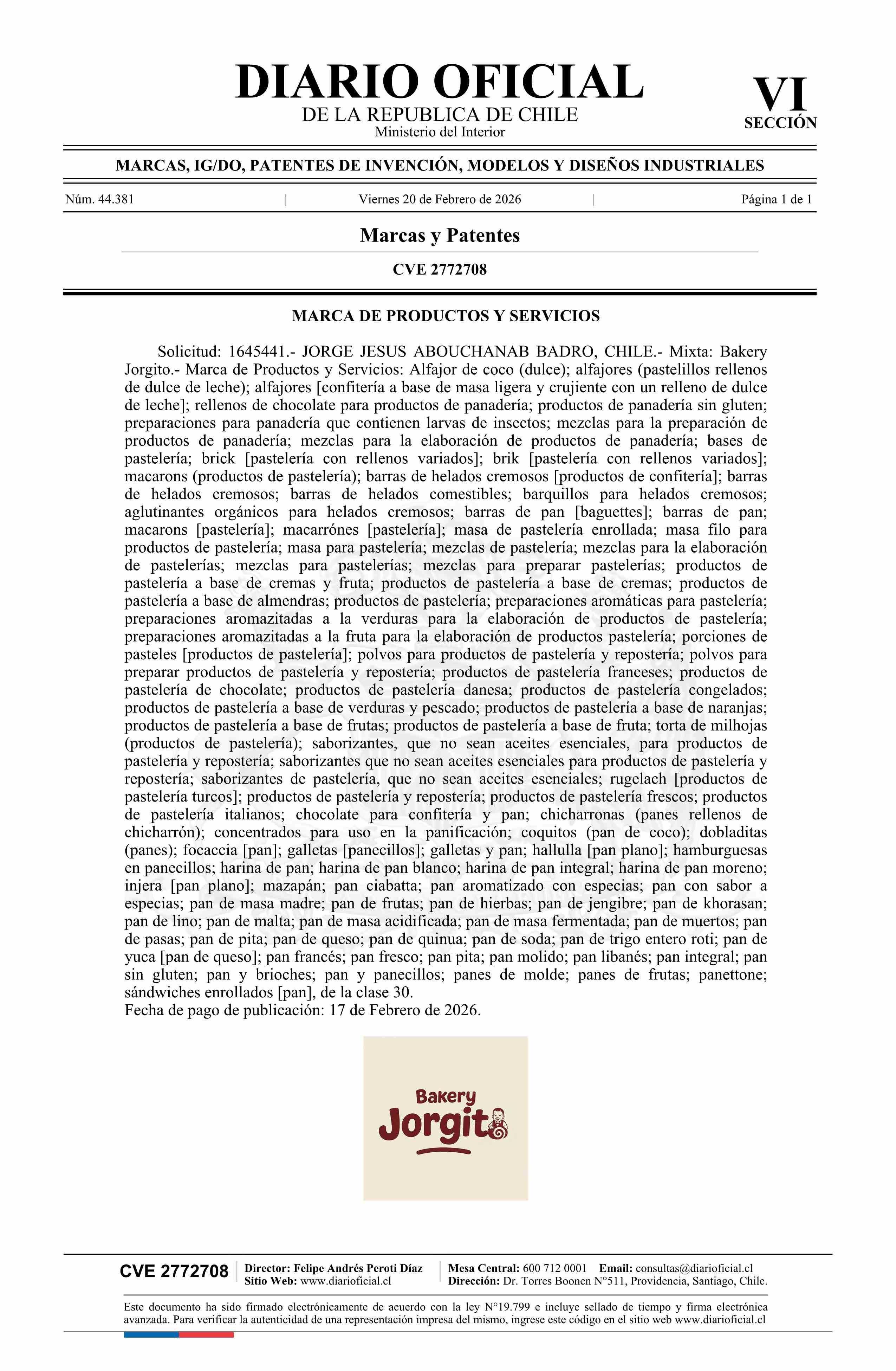 Solicitud número 1645441.- Bakery Jorgito