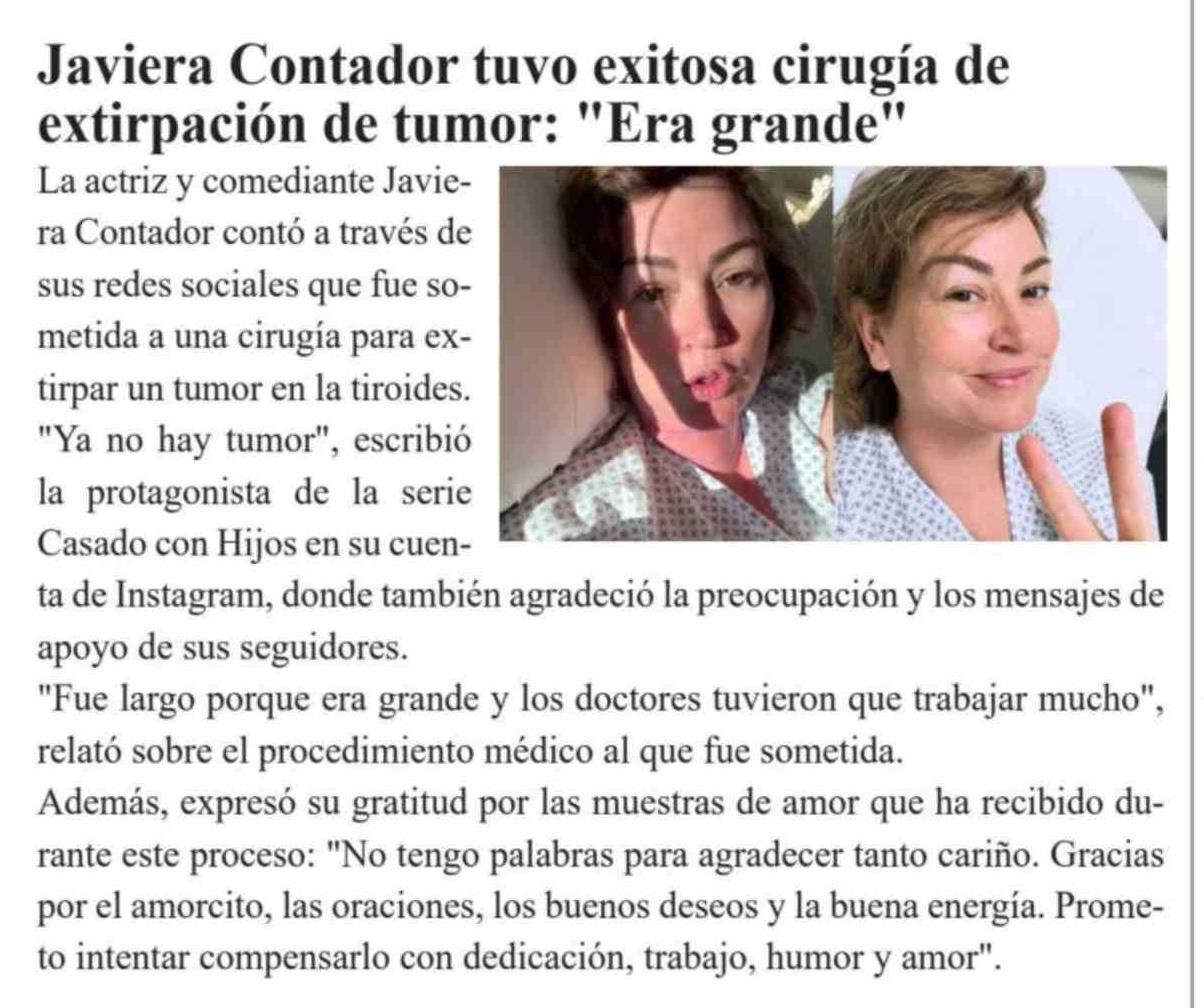 Javiera Contador tuvo exitosa cirugía de extirpación de tumor: "Era grande"