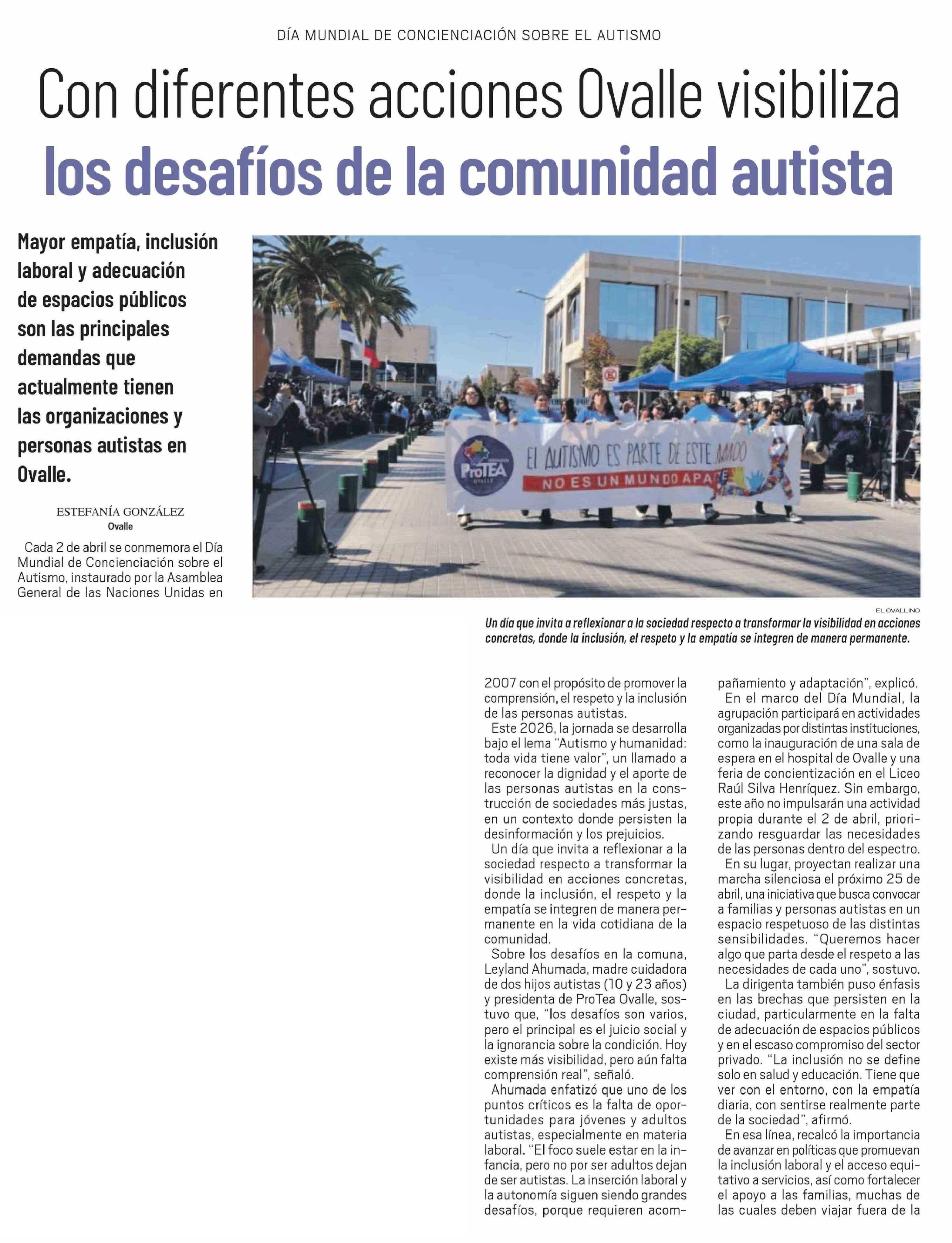 Con diferentes acciones Ovalle visibiliza los desafios de la comunidad autista