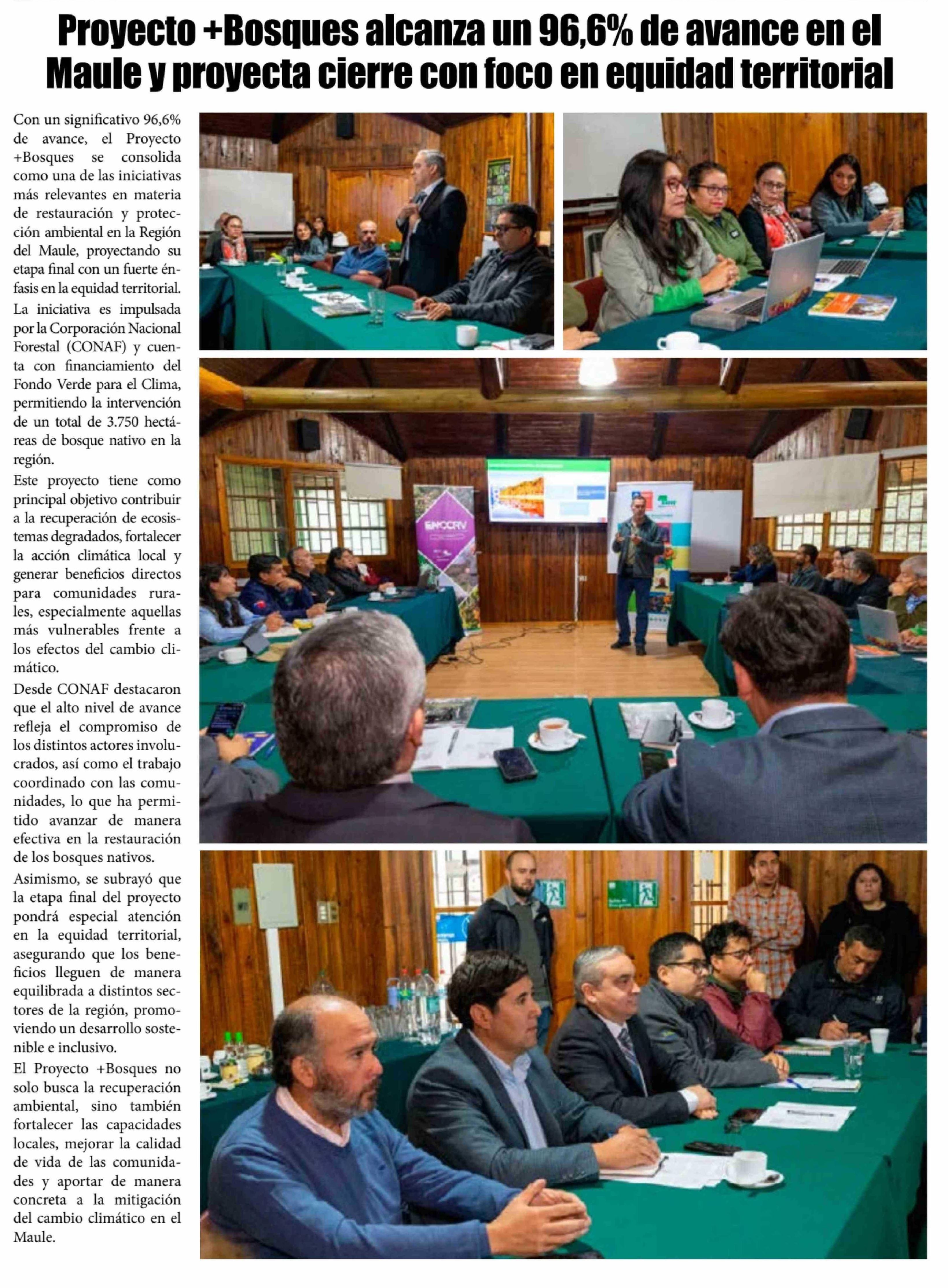 Proyecto +Bosques alcanza un 96,6% de avance en el Maule y proyecta cierre con foco en equidad territorial