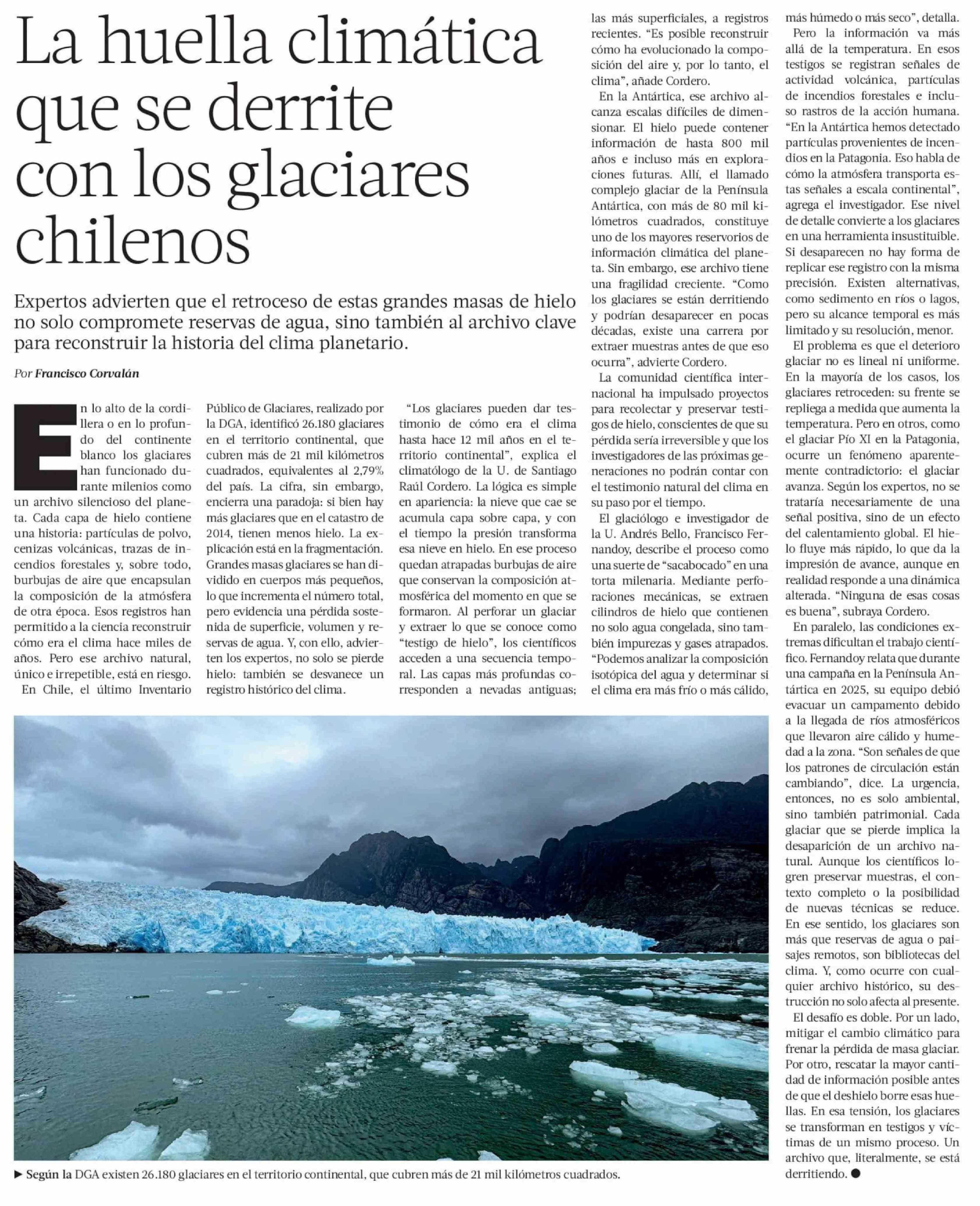 La huella climática que se derrite con los glaciares chilenos