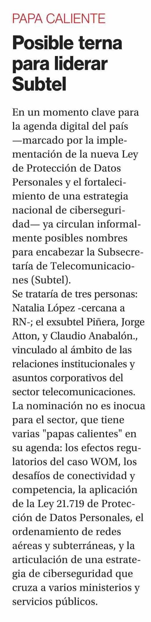 Posible terna para liderar Subtel
