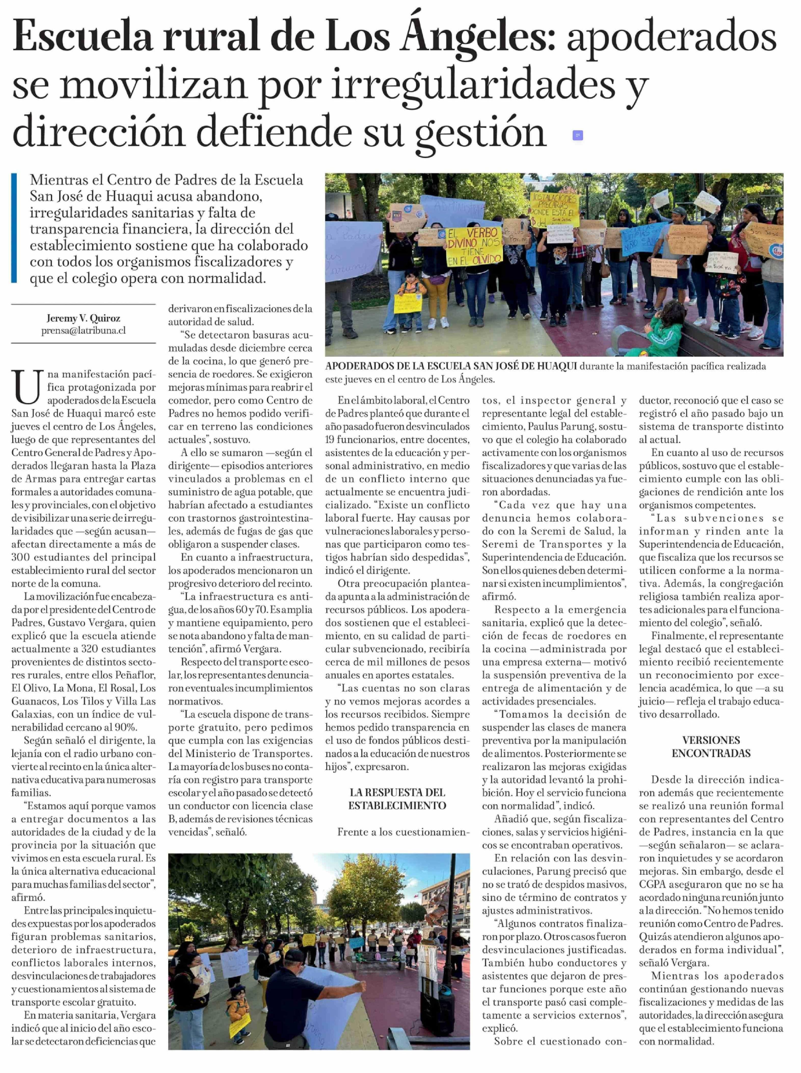 Escuela rural de Los Ángeles: apoderados se movilizan por irregularidades y dirección defiende su gestión