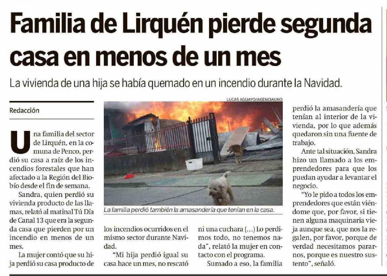 Familia de Lirquén pierde segunda casa en menos de un mes