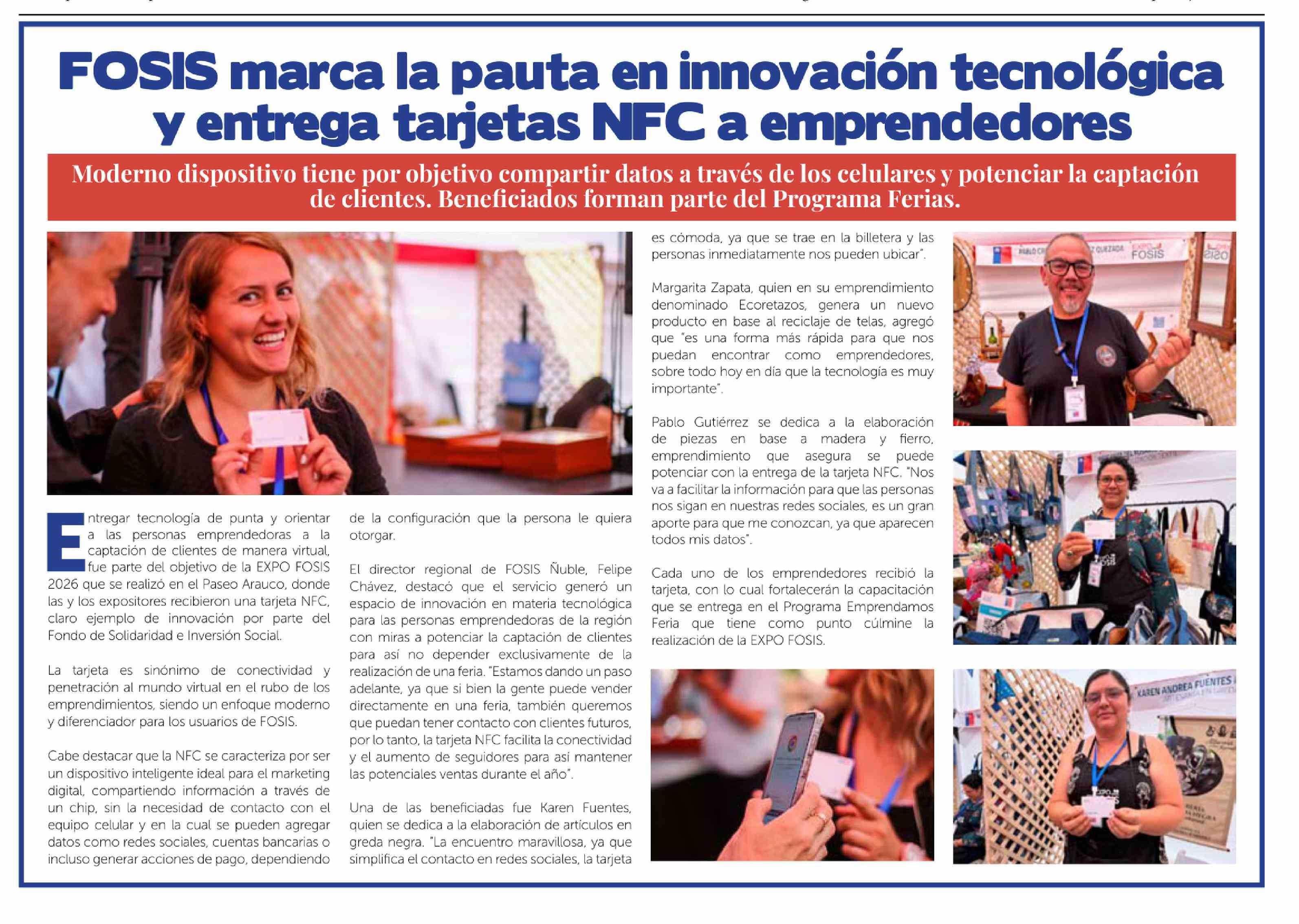 Extractos: FOSIS marca la pauta en innovación tecnológica y entrega tarjetas NFC a emprendedores