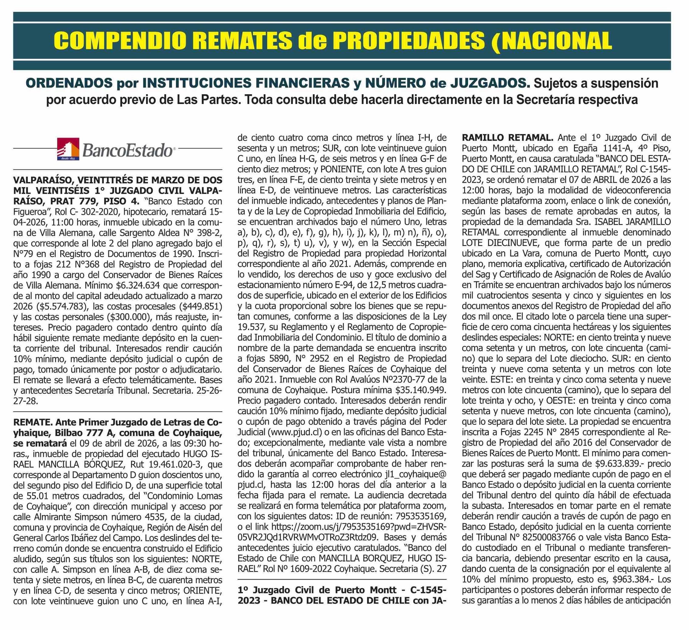 REMATES: COMPENDIO REMATES de PROPIEDADES (NACIONAL