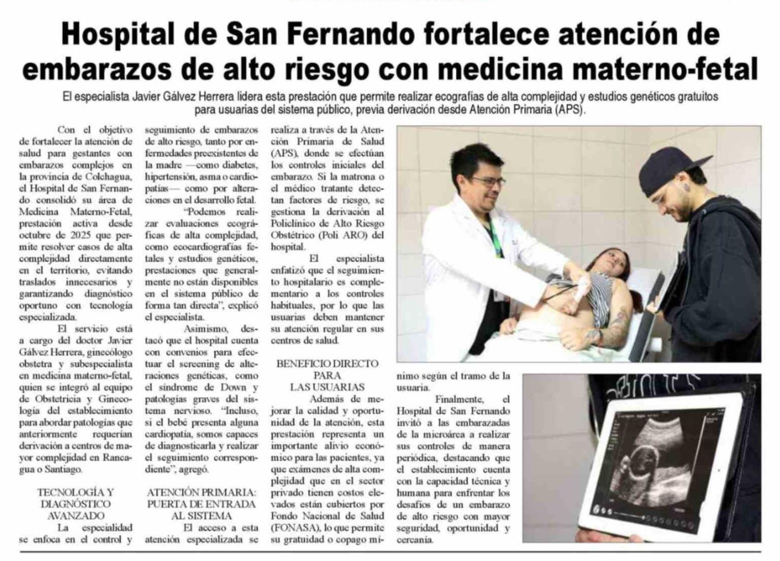 Hospital de San Fernando fortalece atención de embarazos de alto riesgo con medicina materno-fetal
