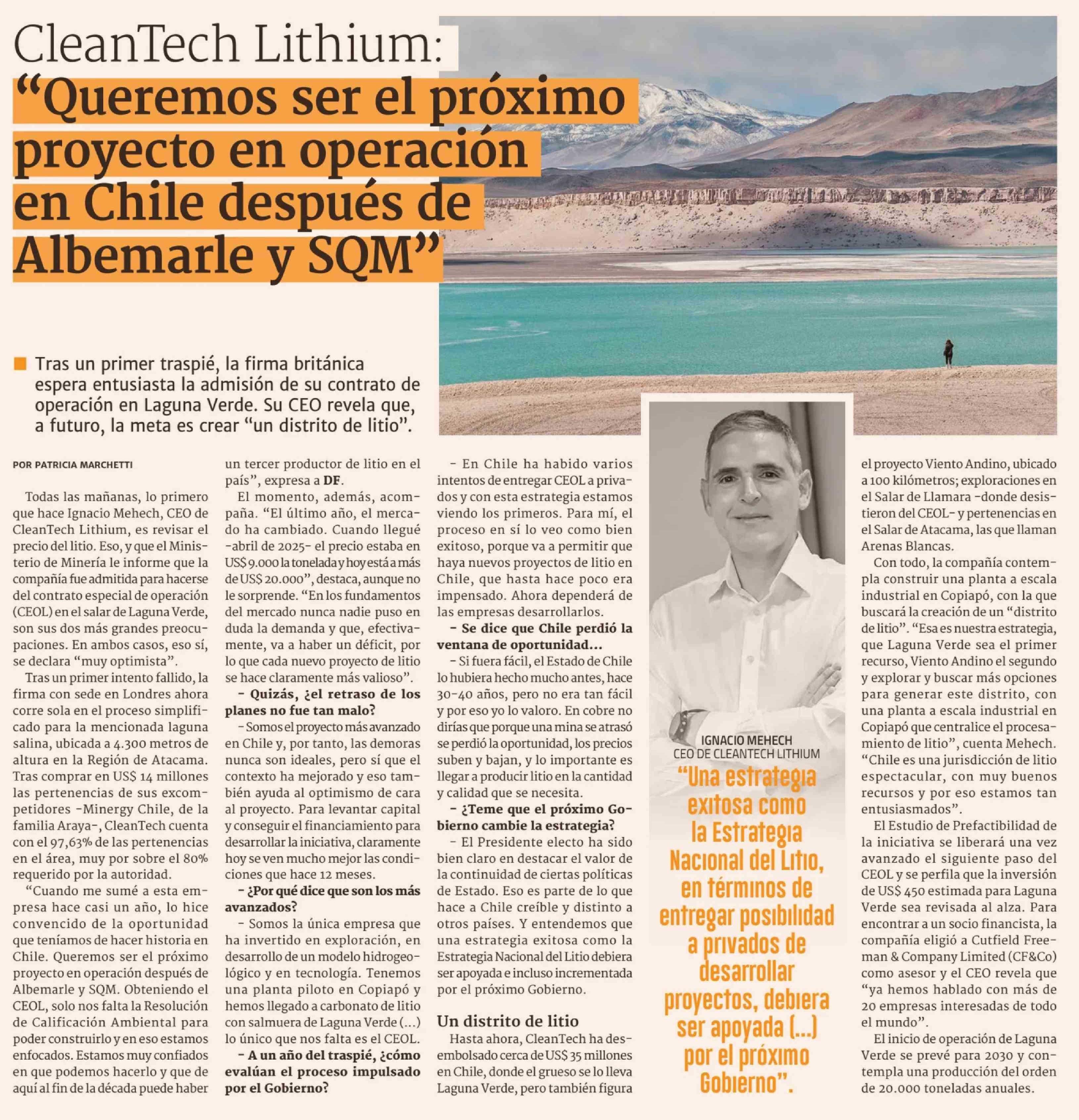 CleanTech Lithium: "Queremos ser el próximo proyecto en operación en Chile después de Albemarle y SQM"