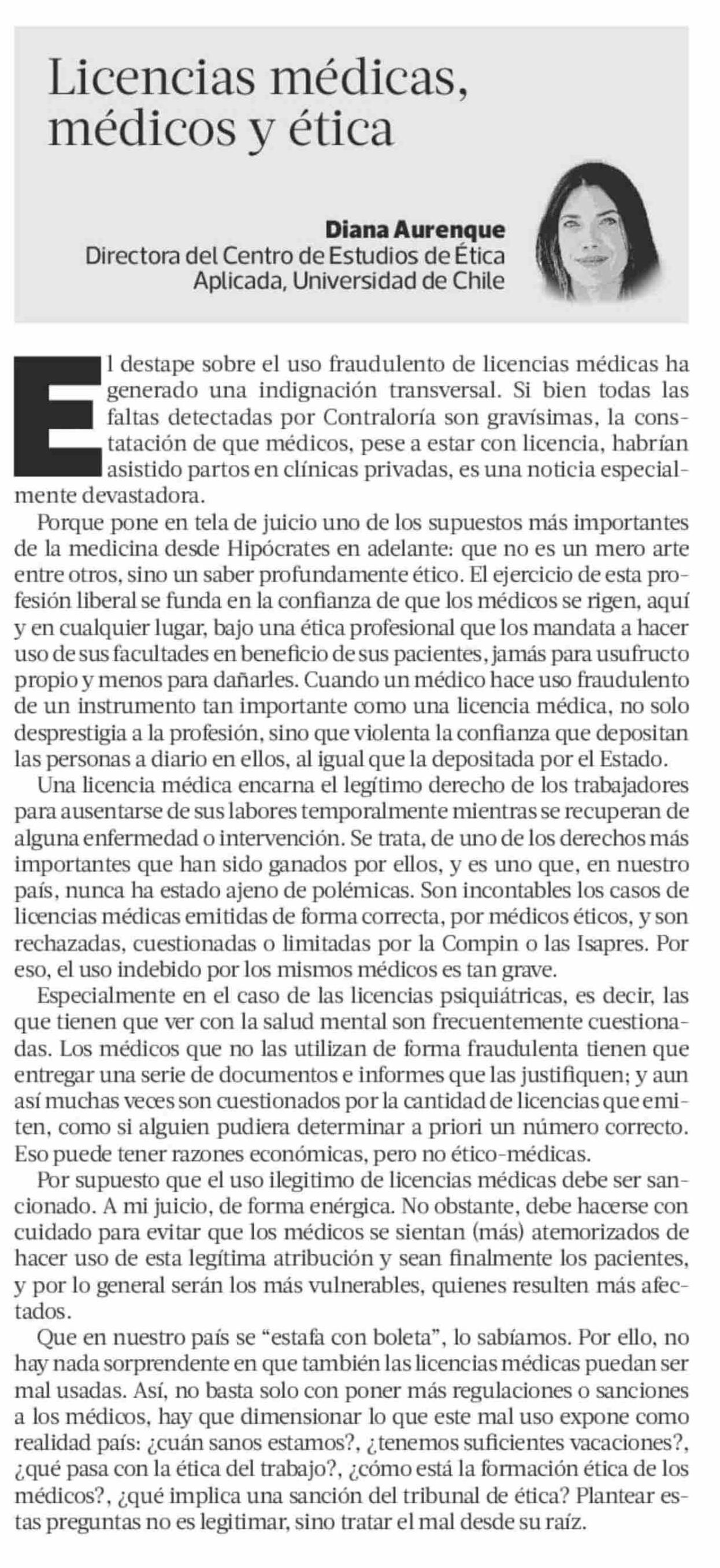 COLUMNAS DE OPINIÓN: Licencias médicas, médicos y ética
