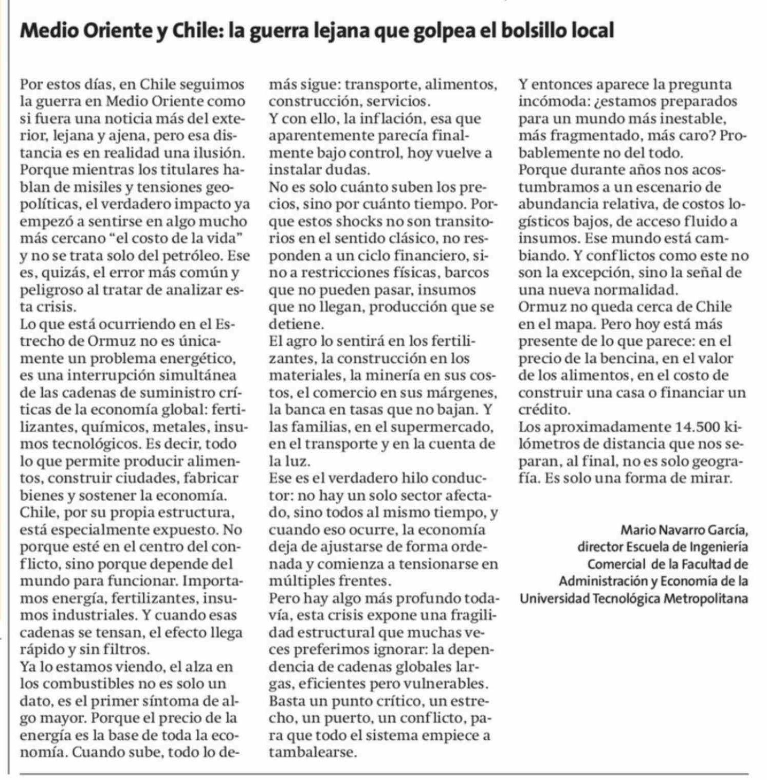 Cartas: Medio Oriente y Chile: la guerra lejana que golpea el bolsillo local