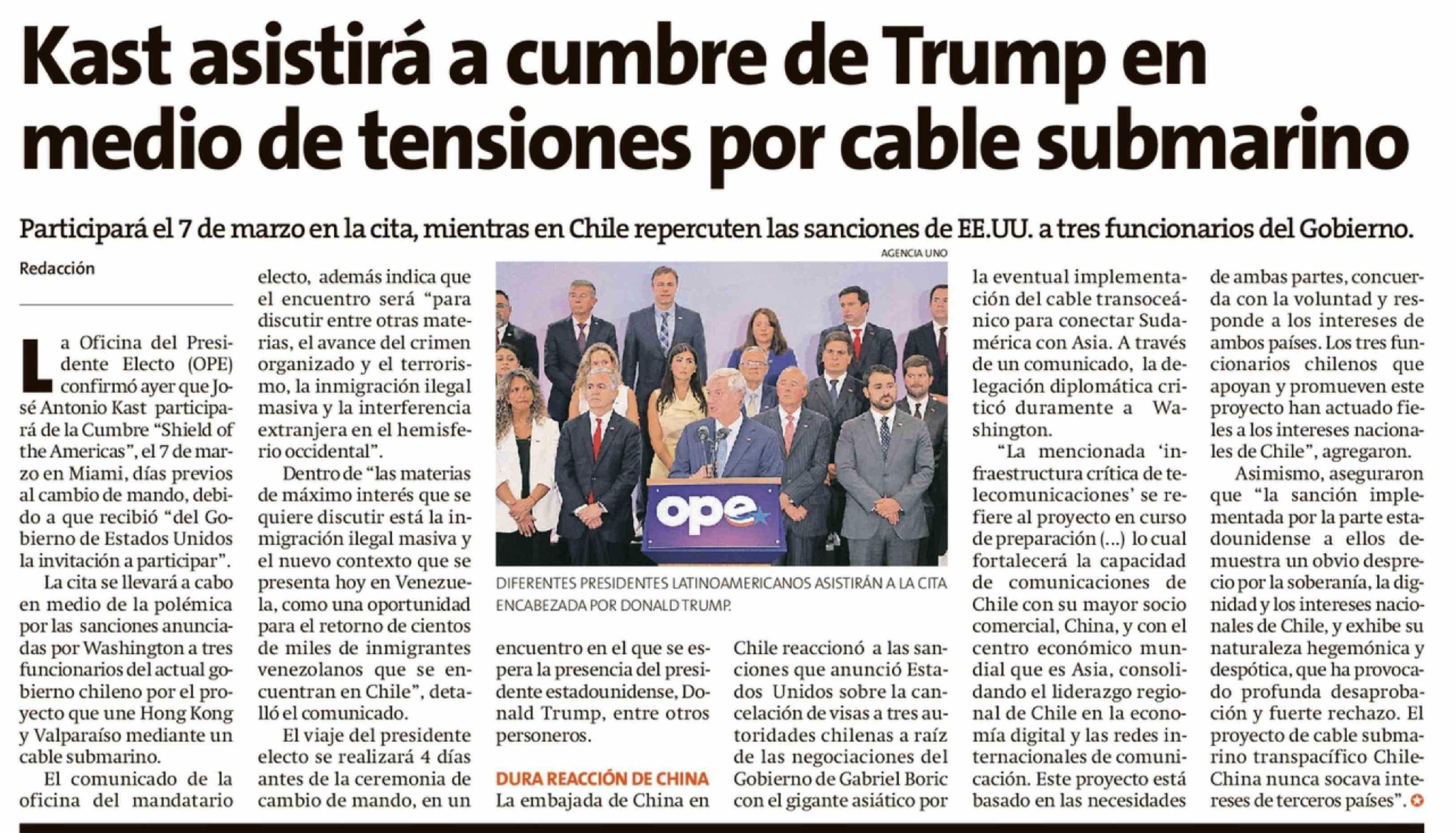 Kast asistirá a cumbre de Trump en medio de tensiones por cable submarino