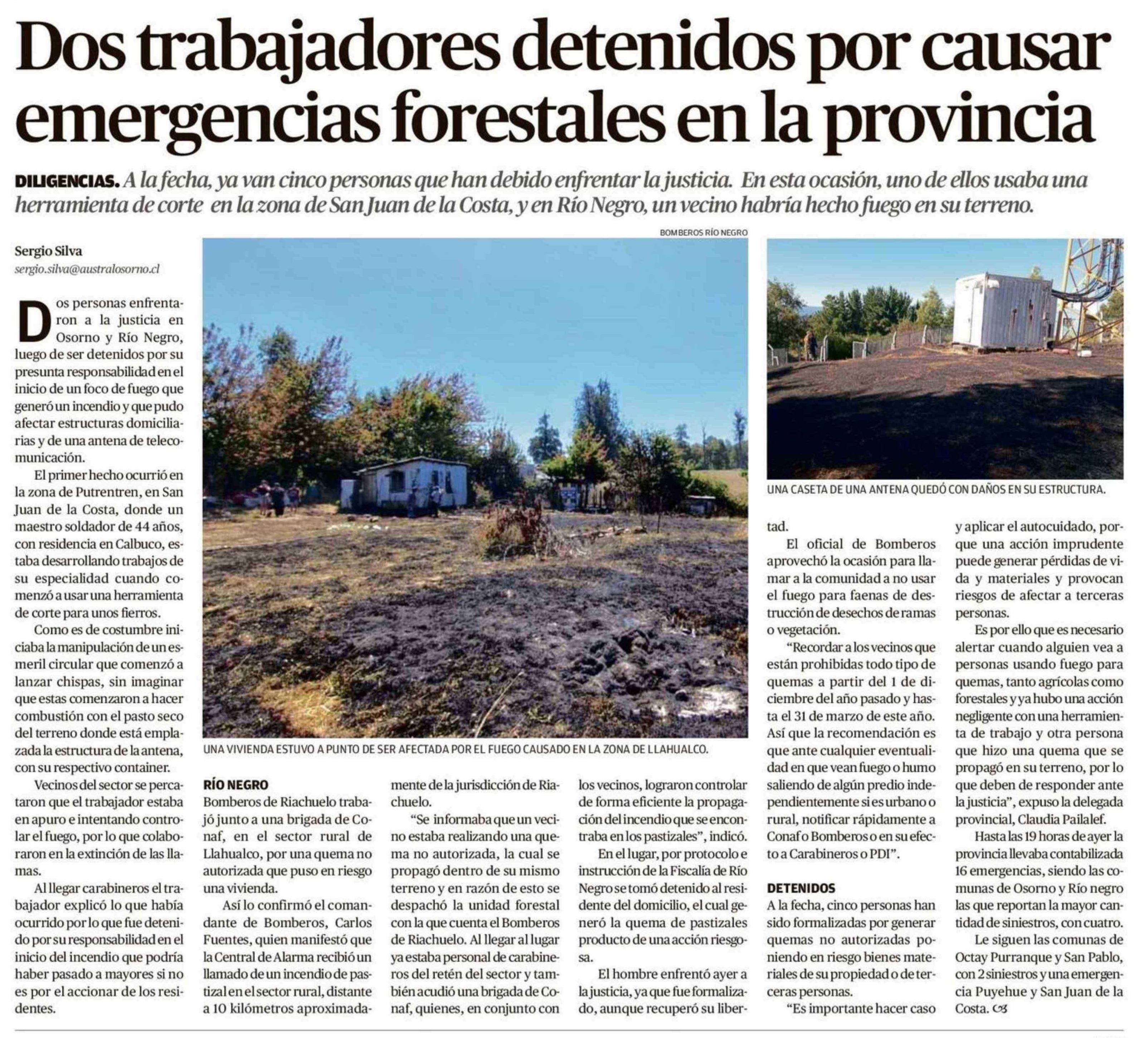 Dos trabajadores detenidos por causar emergencias forestales en la provincia