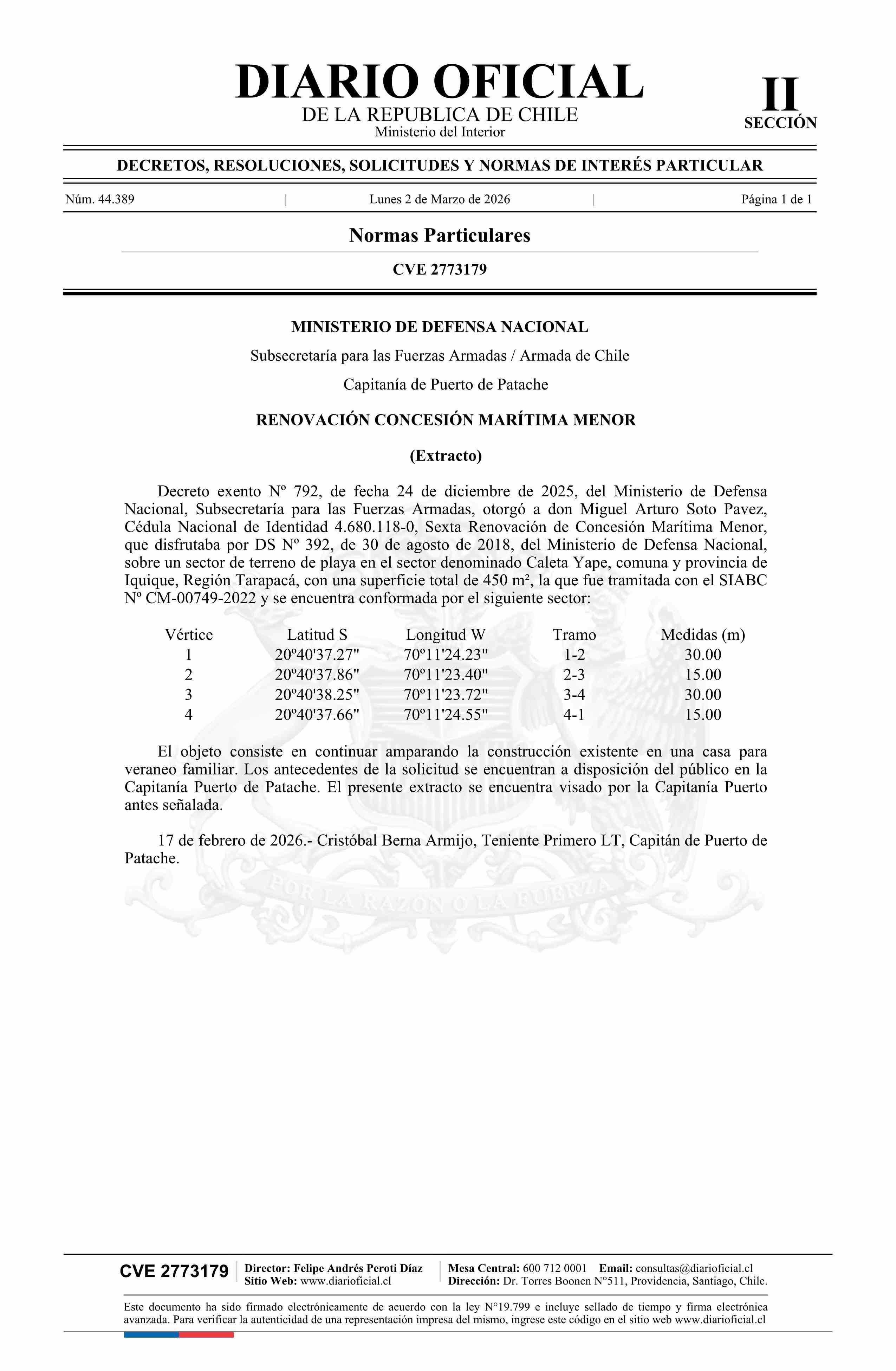 | Título: | Extracto de decreto exento número 792, de 2025.- Renovación de concesión marítima menor |