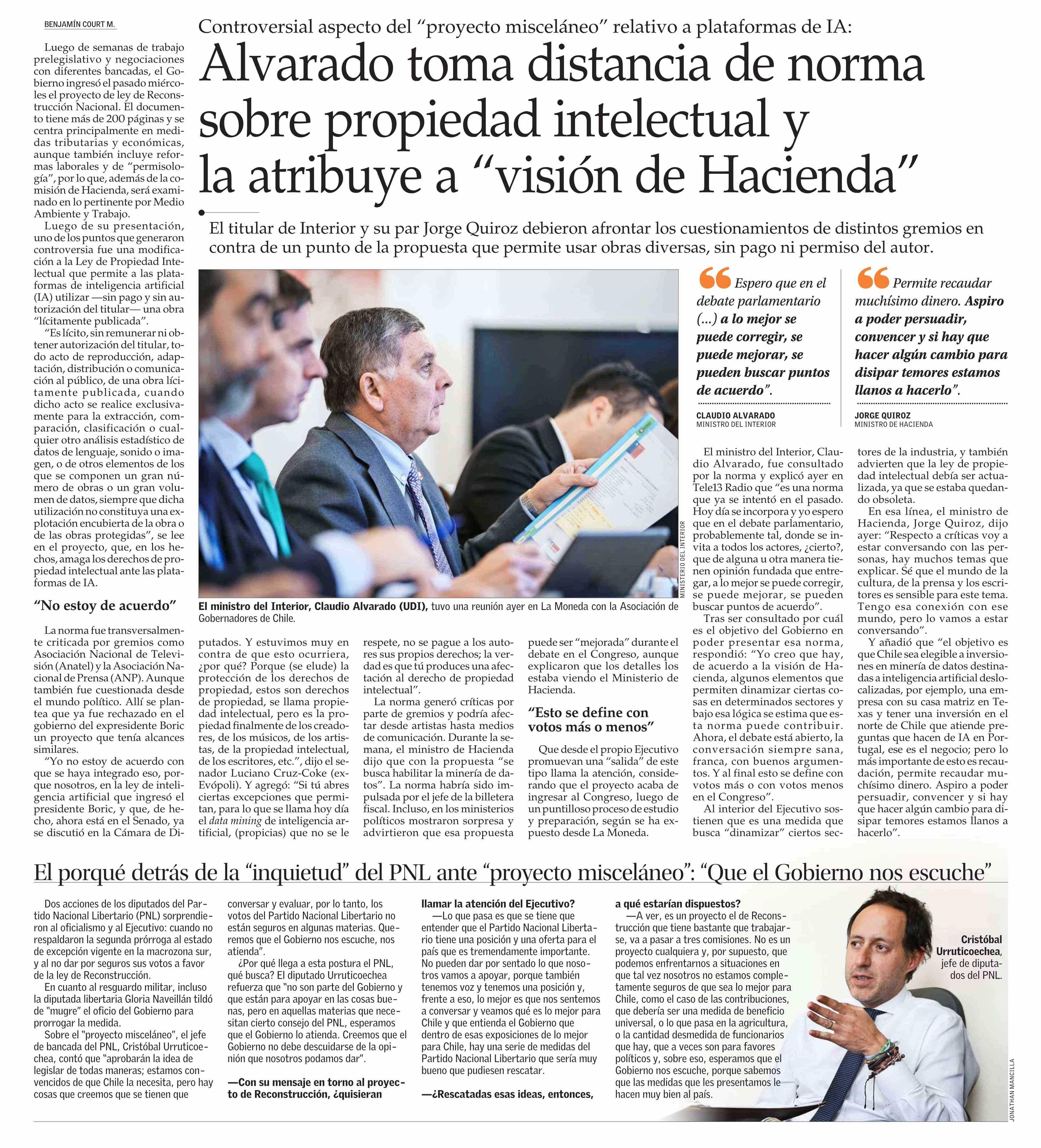 Alvarado toma distancia de norma sobre propiedad intelectual y la atribuye a "visión de Hacienda"