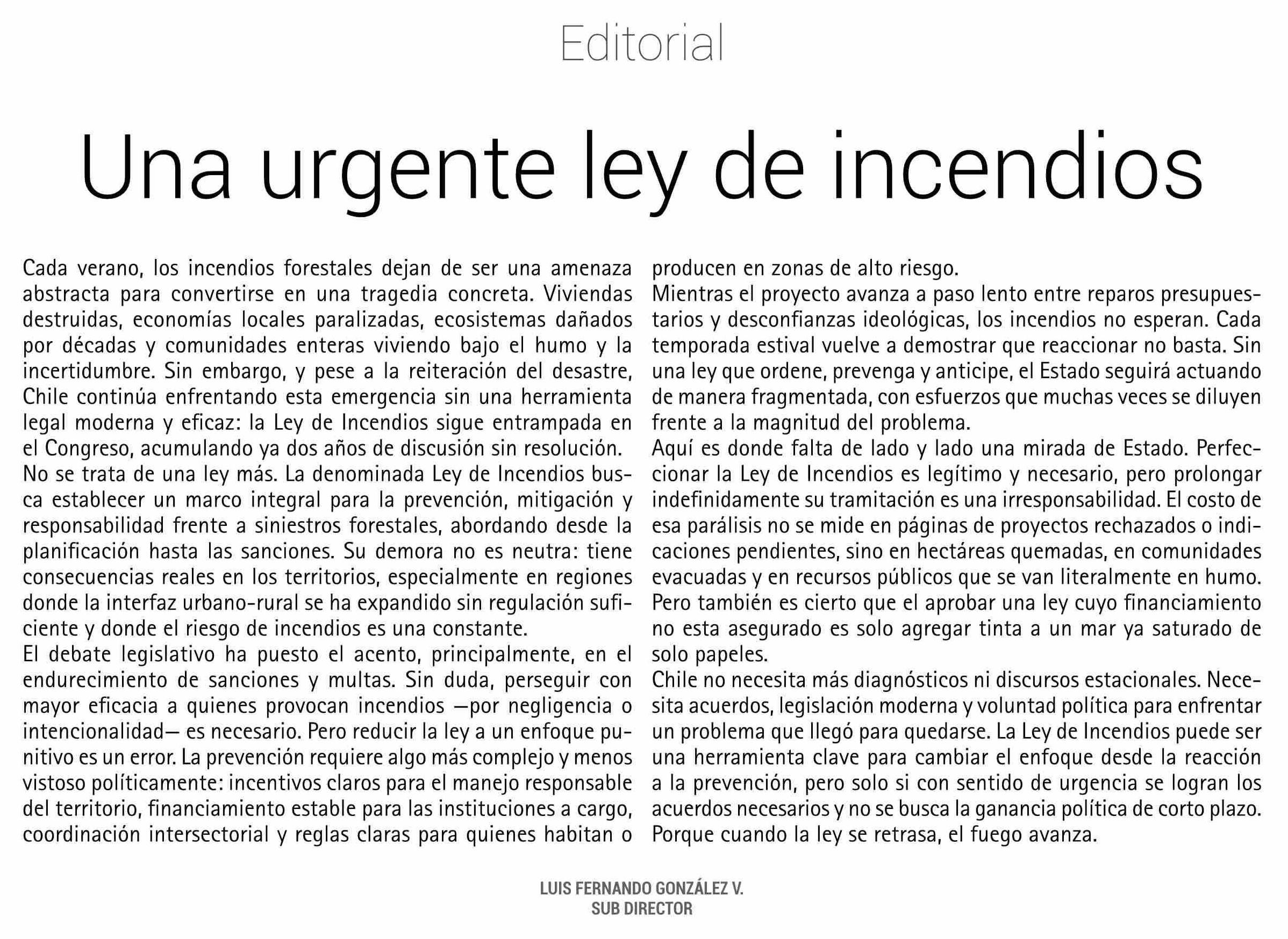 Una urgente ley de incendios