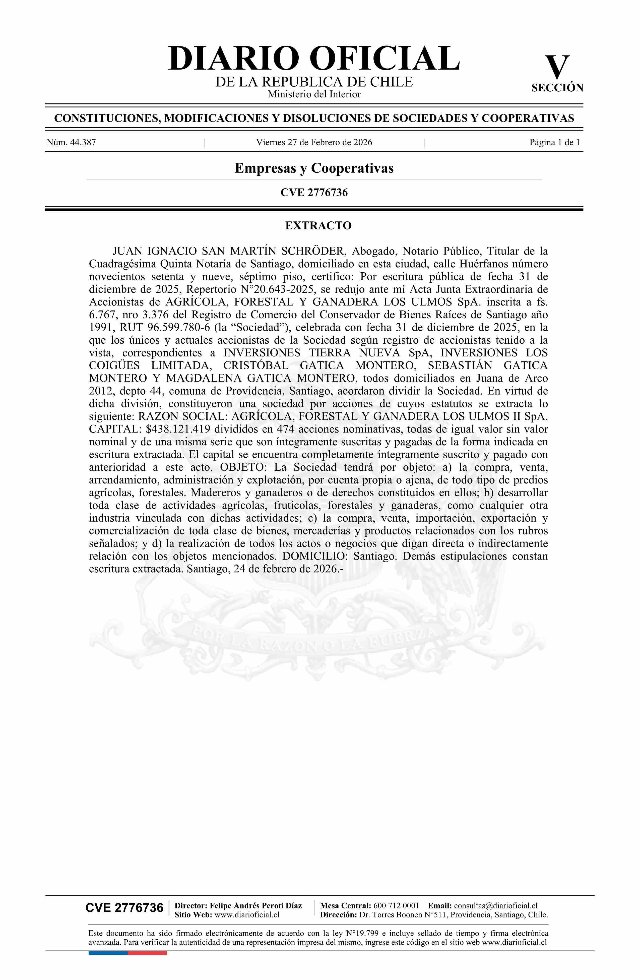 Título: AGRÍCOLA, FORESTAL Y GANADERA LOS ULMOS II SpA