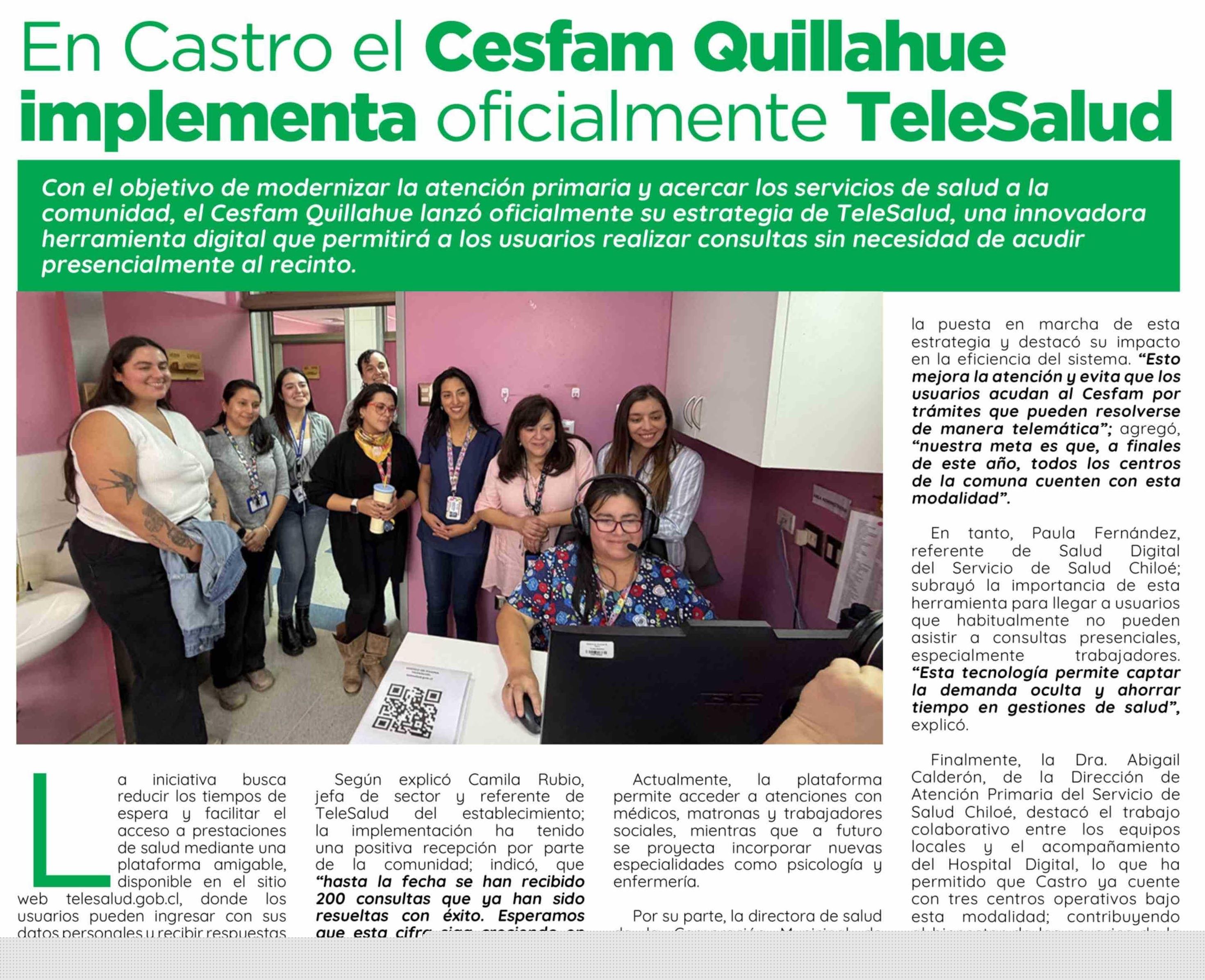 En Castro el Cesfam Quillahue implementa oficialmente TeleSalud