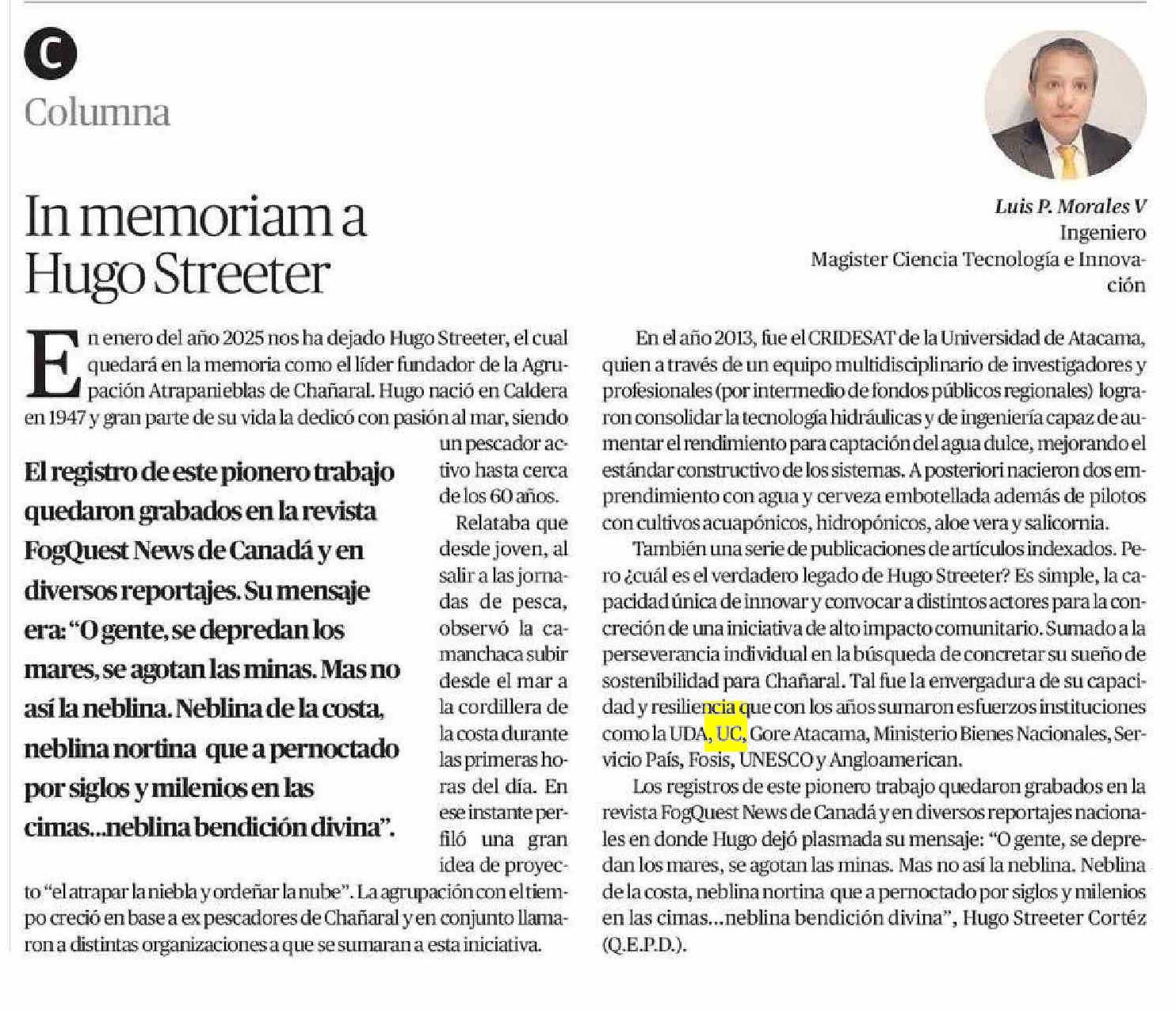 COLUMNAS DE OPINIÓN: In memoriam a Hugo Streeter